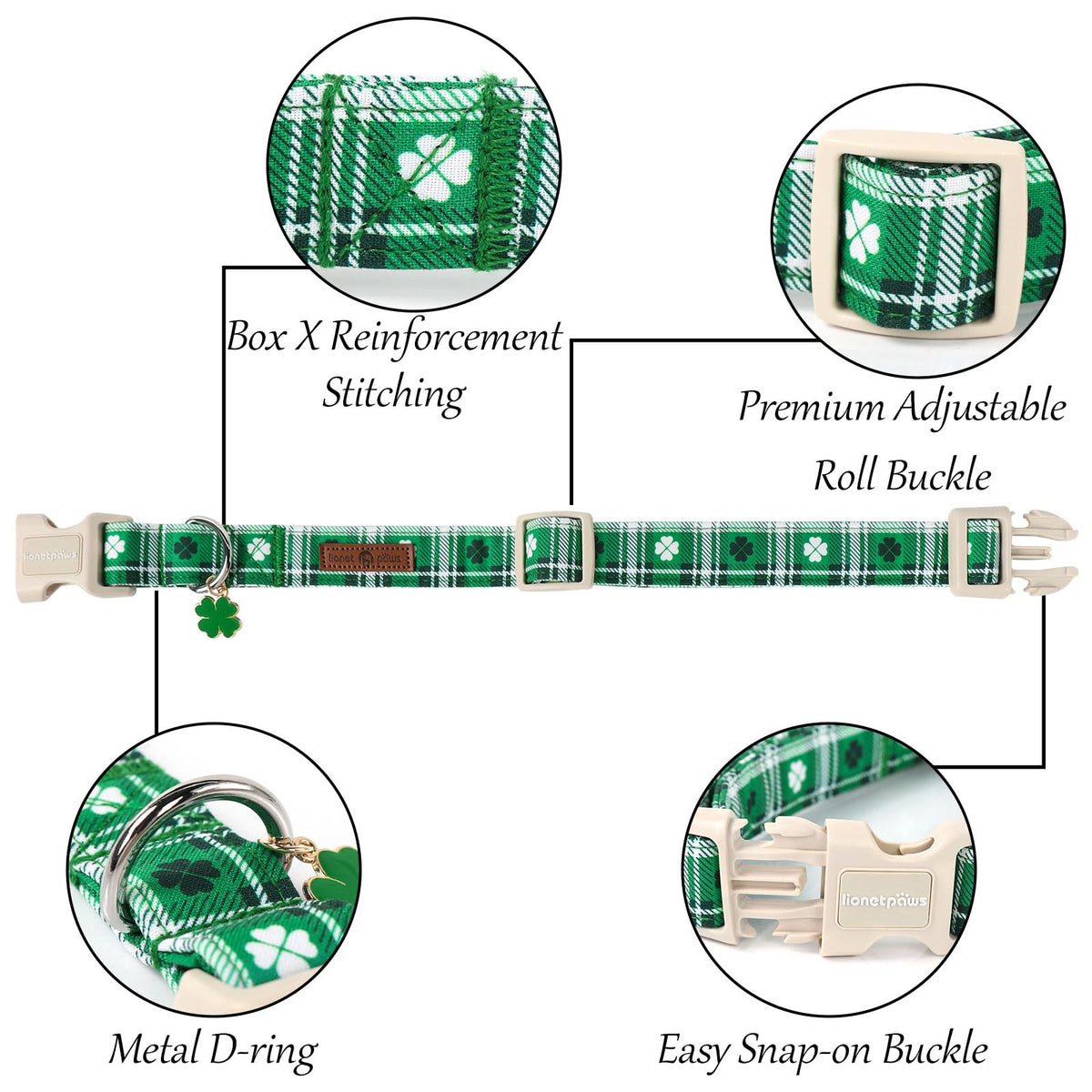 Lionet Paws St. Patrick Dog Collar, Comfortable Adjustable Green Collar With Green Clover Pattern For Large Male Female Dogs Col