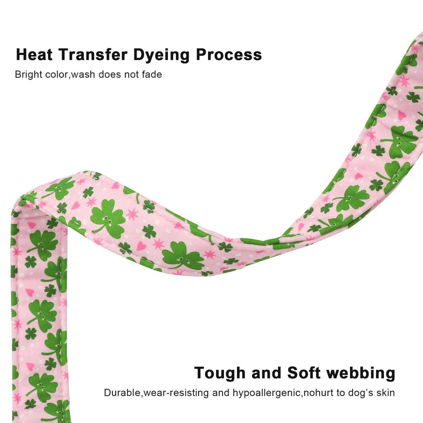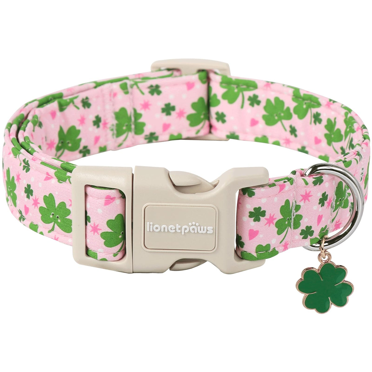 Lionet Paws St. Patrick Dog Collar- Cute Clover Pink Dog Collars With Plastic Buckle, Light Adjustable Dog Collars With Clover P