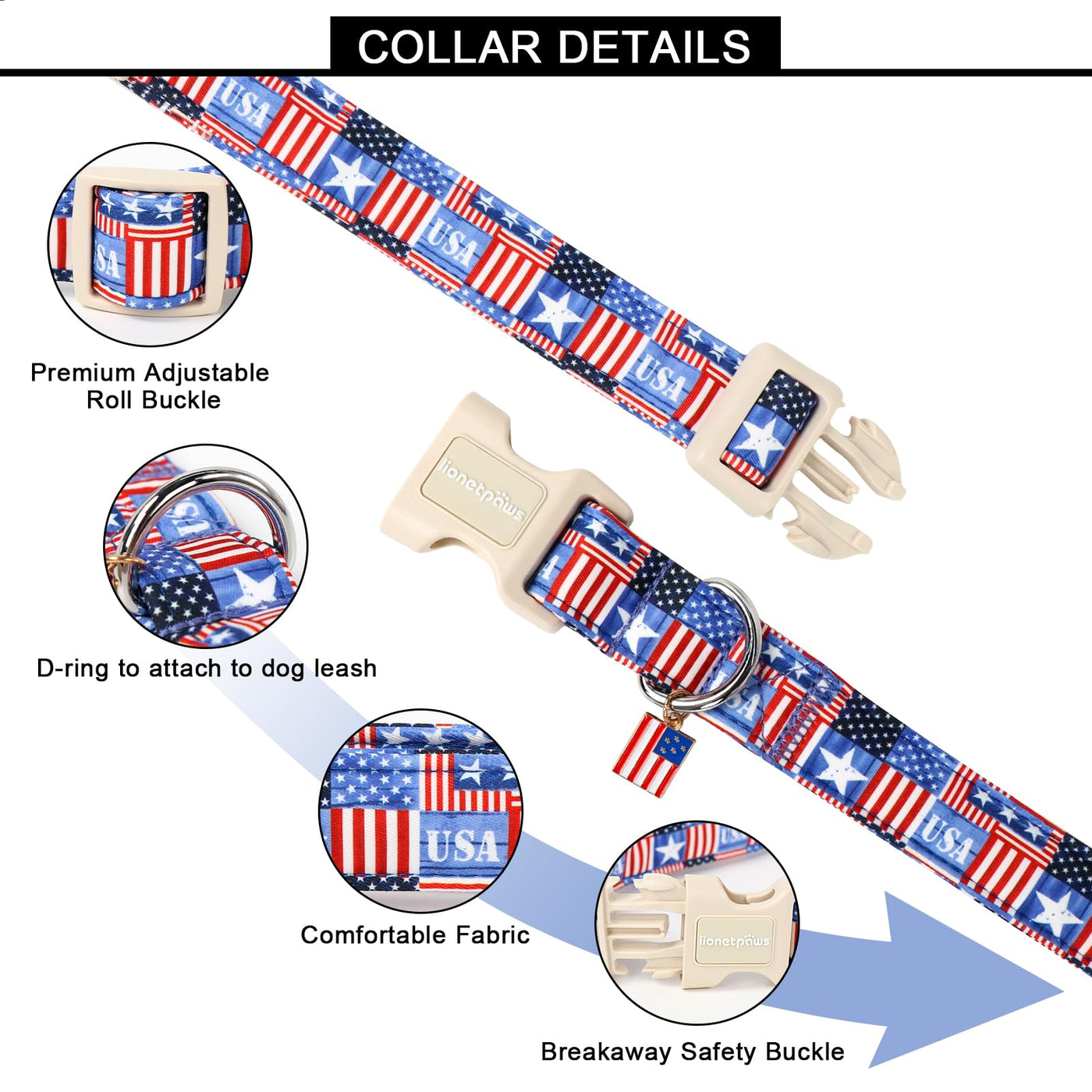 Lionet Paws Summer Dog Collar- Cute 4Th Of July Dog Collars With America Flag Pattern And Plastic Buckle, Light Adjustable Dog C