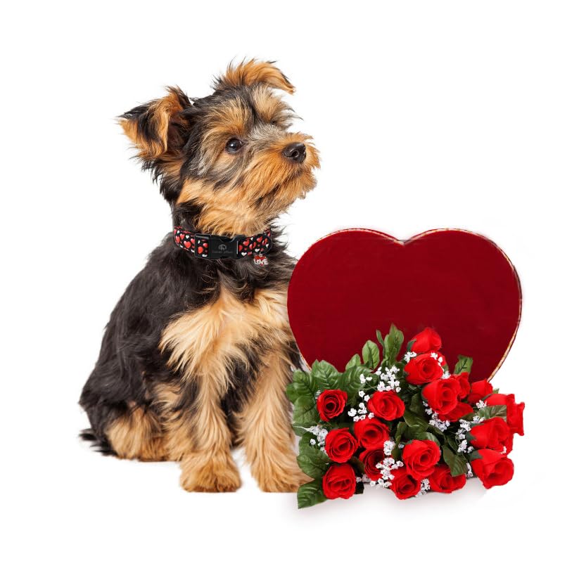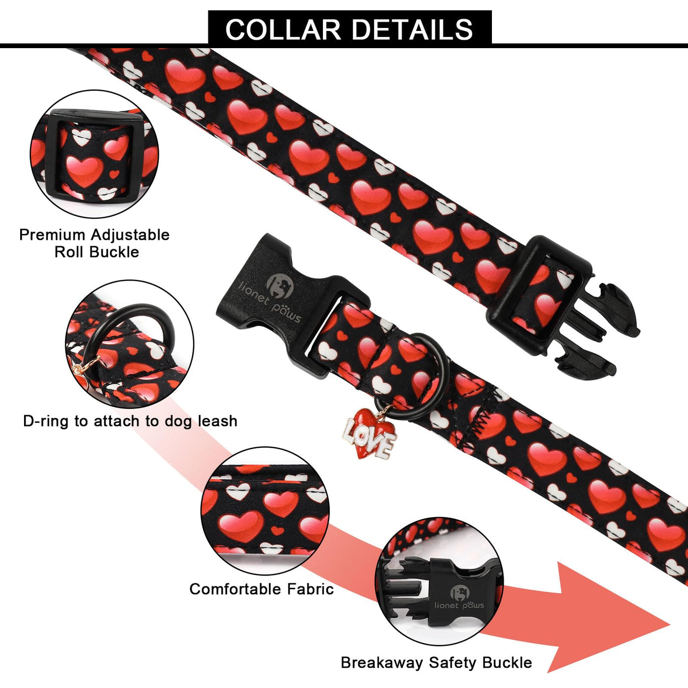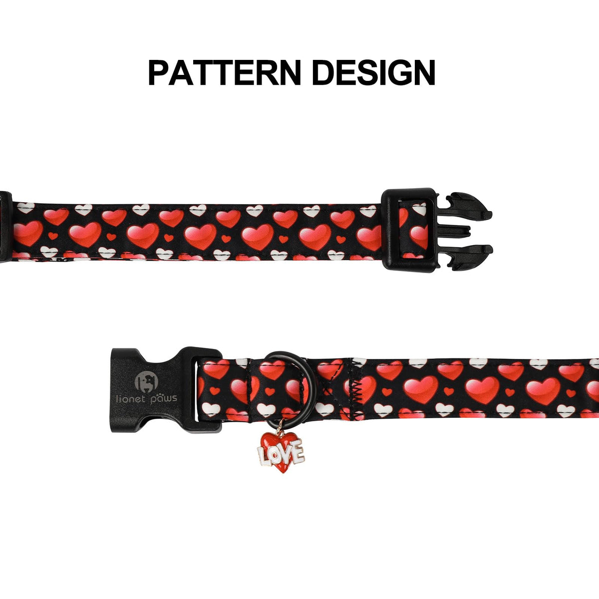 Lionet Paws Valentine'S Dog Collar- Cute Sweet Pink Heart Black Dog Collars With Plastic Buckle, Light Adjustable Dog Collars Fo