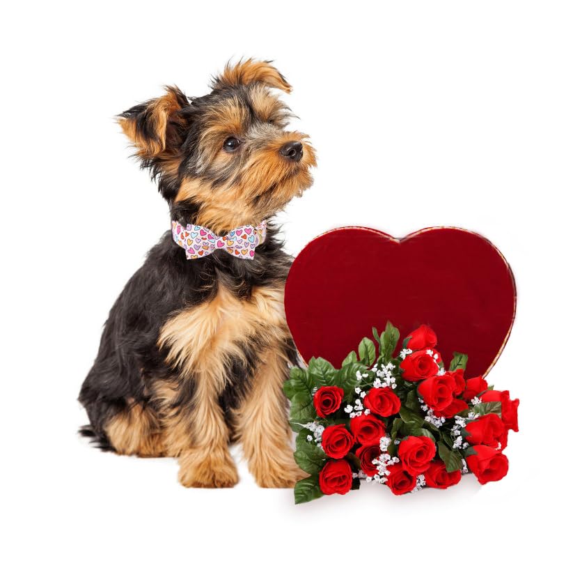 Lionet Paws Valentine'S White Dog Collar, Cute Heart Dog Collar For Medium Dogs, Adjustable Cotton Pet Collars For Small Medium