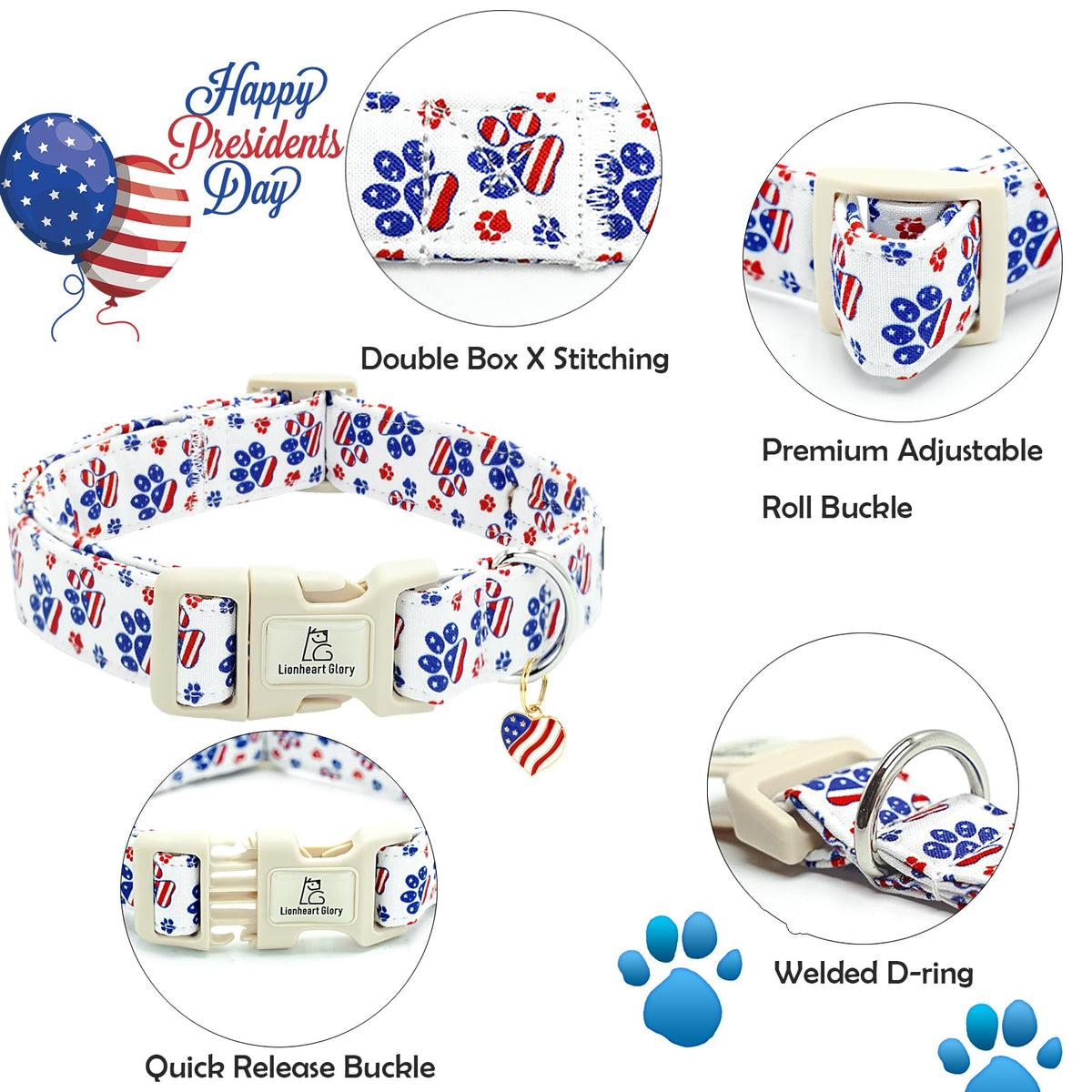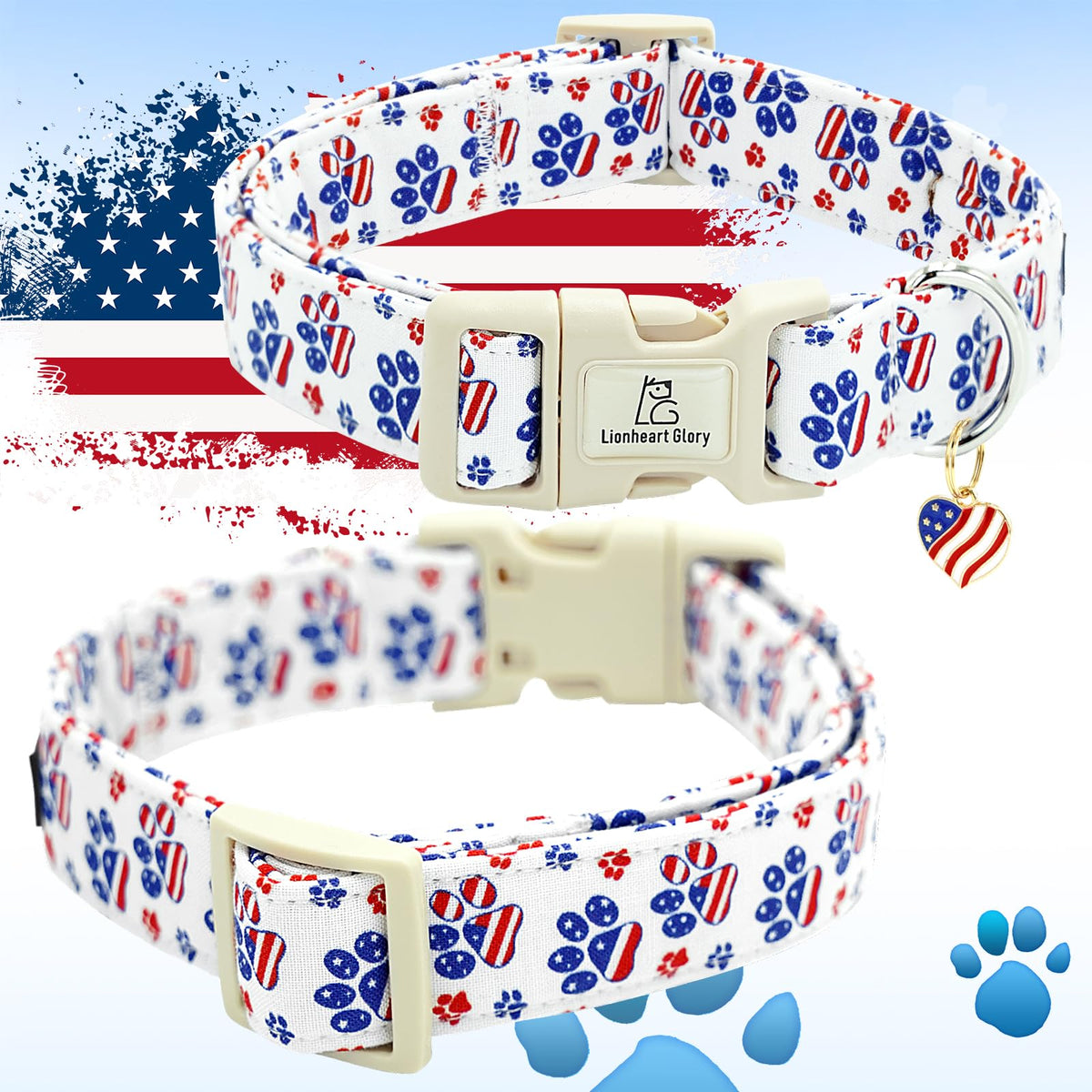 Lionheart Glory American Flag Dog Collar-4 Of July Patriotic Independence Day Dog Collar Heavy Duty Adjustable Dog Collars For L