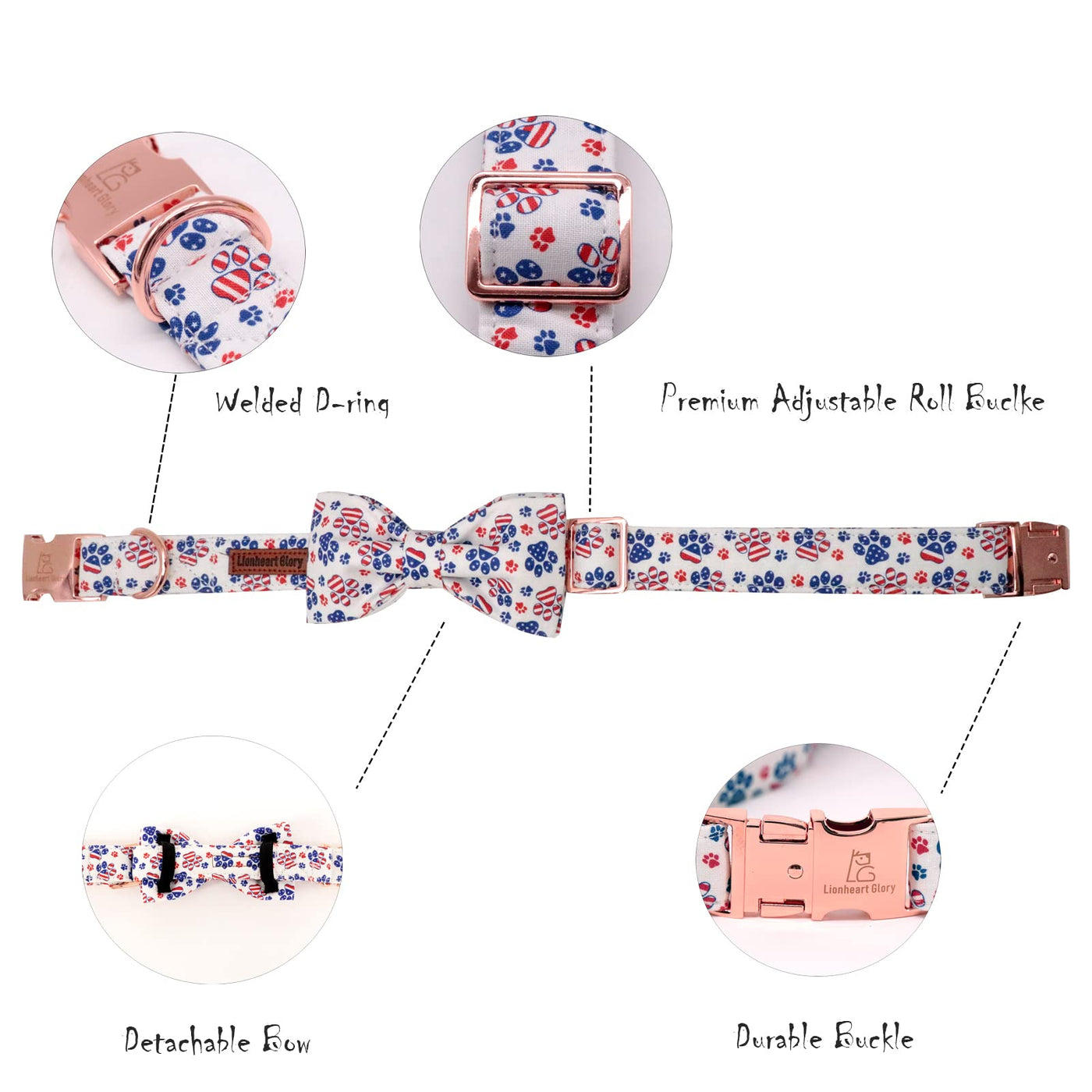 Lionheart Glory American Flag Dog Collar - 4Th Of July Collar With Adjustable Bow For Small Dogs