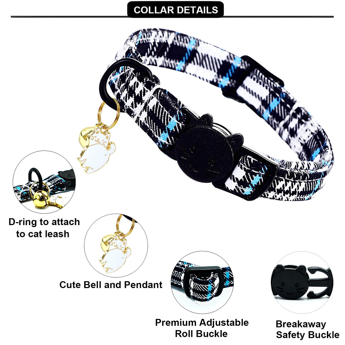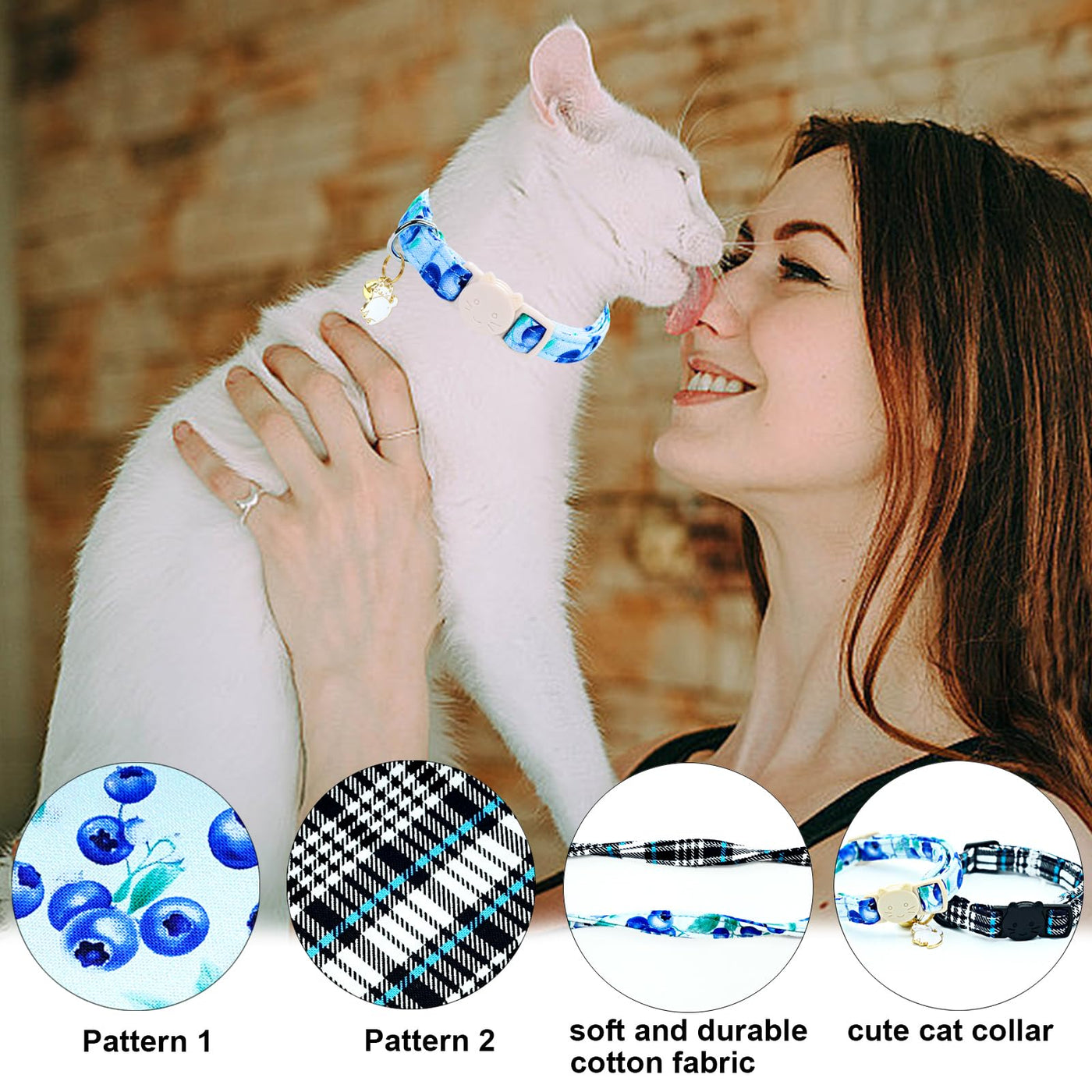 Lionheart Glory Cat Collar Breakaway With Bell & Pendant Blue Kitten Collars Soft Adjustable Safety 2 Pack Kittens For Boy Cats