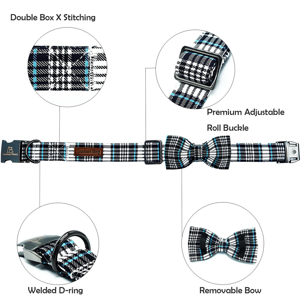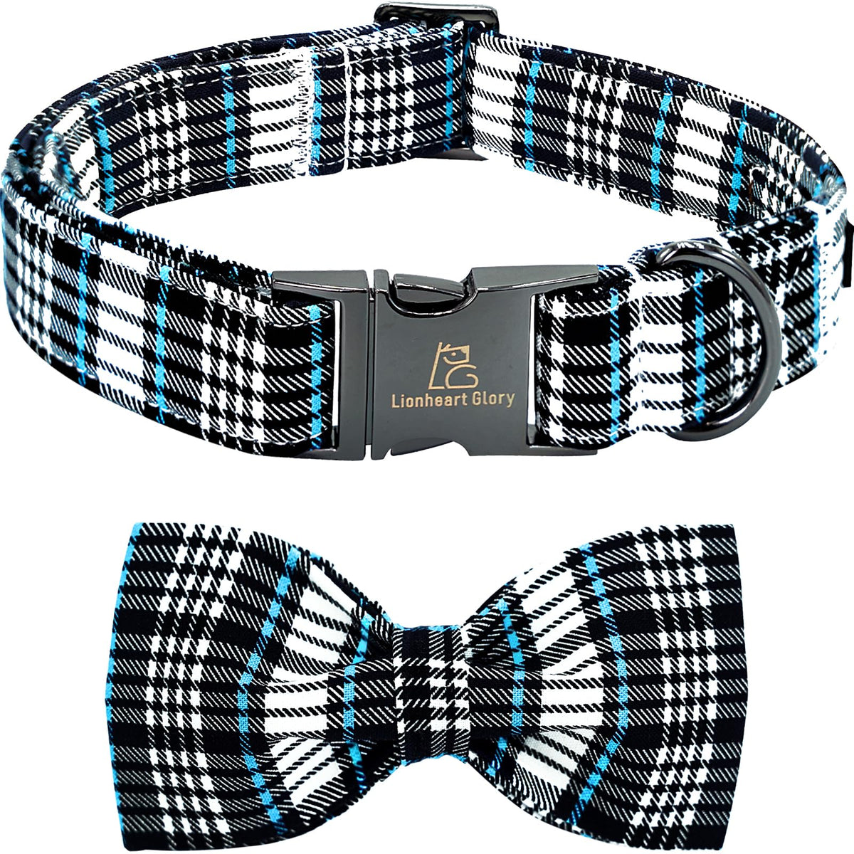 Lionheart Glory Dog Bow Collar Blue And Black Plaid Dog Collar For Small Dogs,Boy Dog Collars With Bowtie Spring Summer Collars