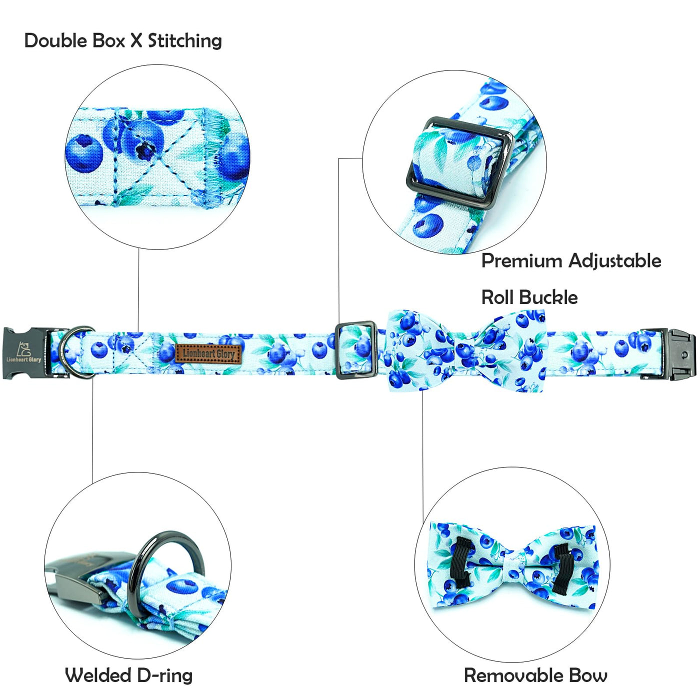 Lionheart Glory Dog Bow Collar Blueberries Print Collars For Medium Dogs, Spring Summer Cute Duty Adjustable Dog Collar With Bow