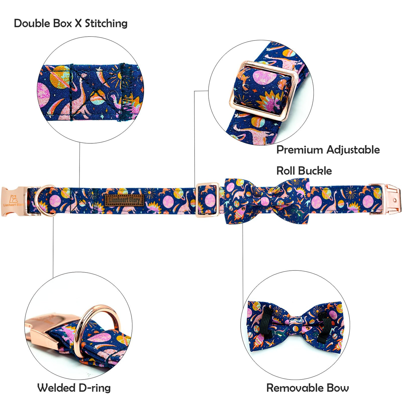 Lionheart Glory Dog Bow Collar Dinosaurs Pattern Cute Collars For Small Dogs,Soft Duty Adjustable Dog Collar With Bowtie Spring