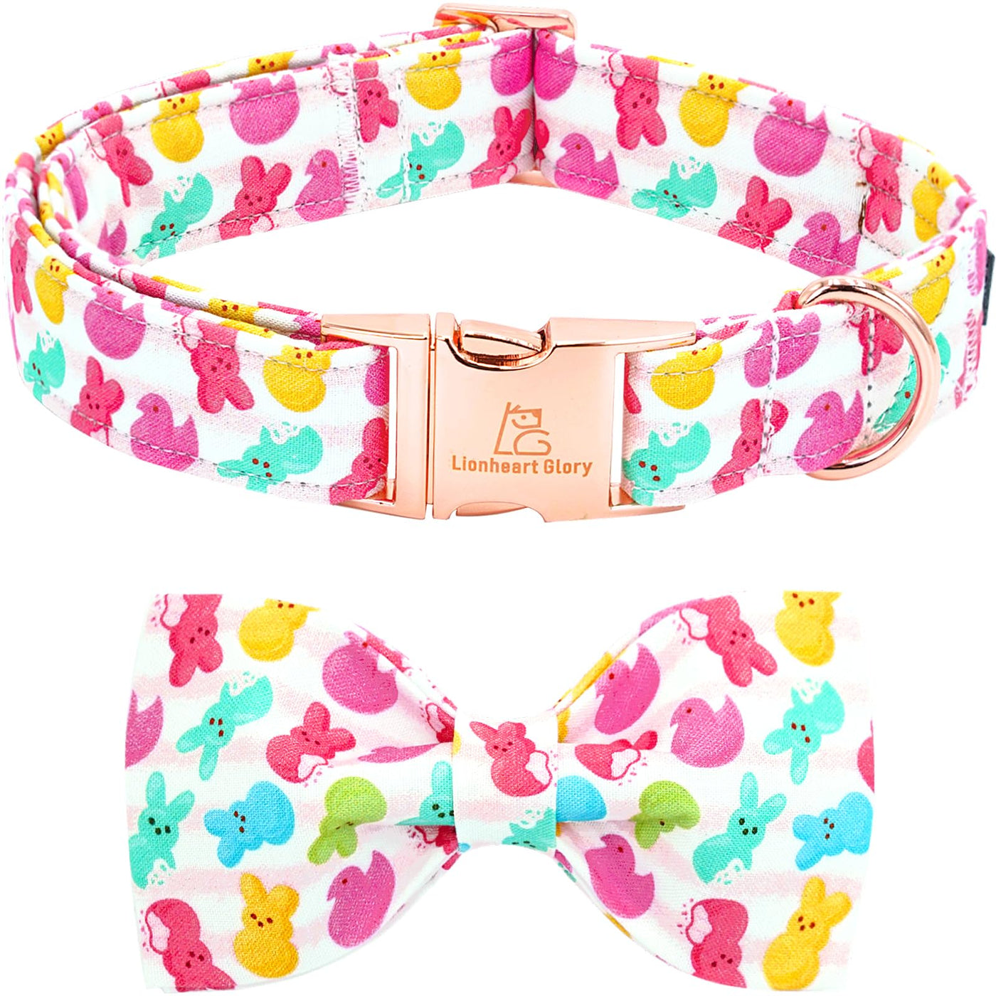 Lionheart Glory Dog Bow Collar Easter Day Dog Collar For Large Dogs,Easter Rabbits Colorful Dog Collars With Bowtie Spring Bunni