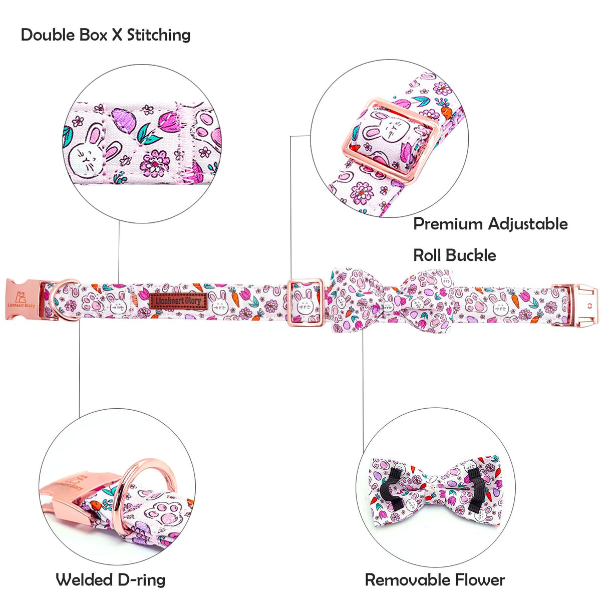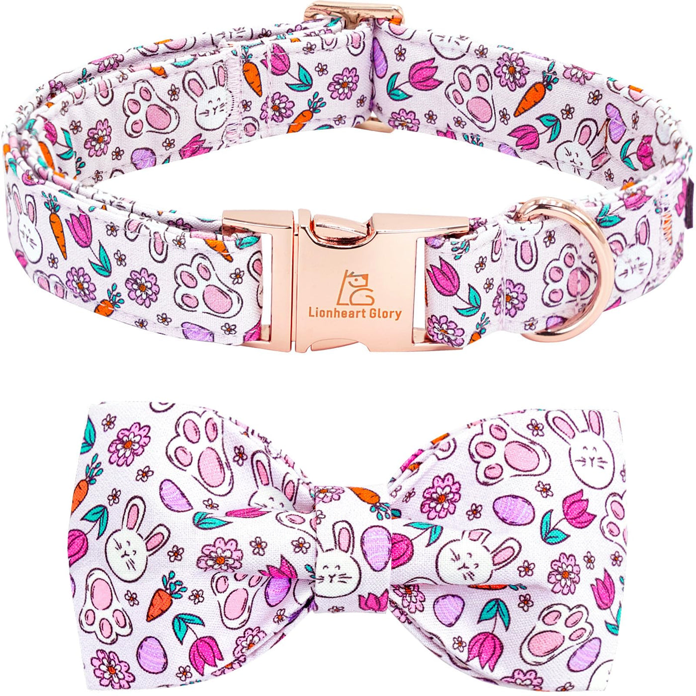 Lionheart Glory Dog Bow Collar Easter Day Dog Collar For Large Dogs,Easter Rabbits Eggs Colorful Dog Collars With Bowtie Spring