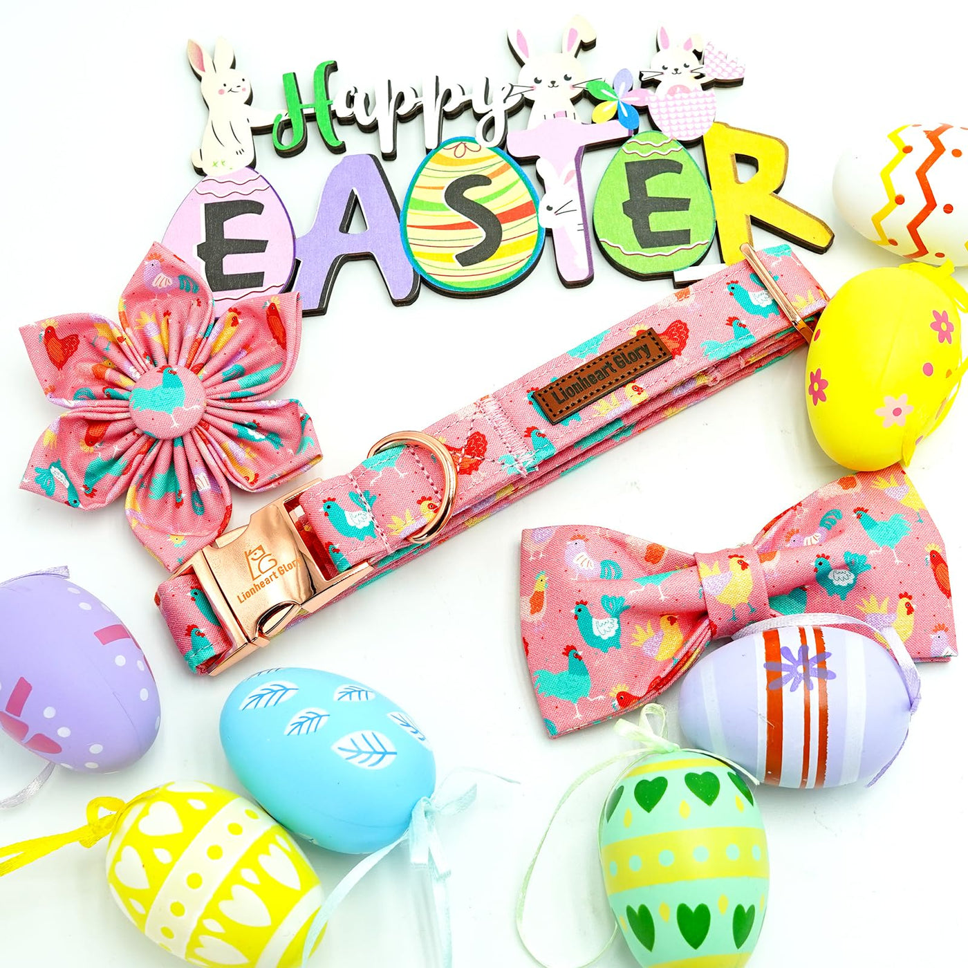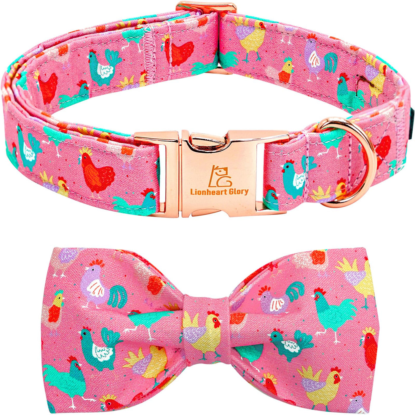 Lionheart Glory Dog Bow Collar Easter Day Dog Collar For Medium Dogs,Easter Chickens Colorful Dog Collars With Bowtie Spring Pin