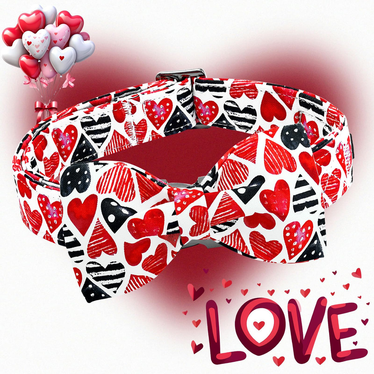 Lionheart Glory Dog Bow Collar Valentine'S Day Dog Collar For X-Small Dogs Red Hearts Print Dog Collar With Bowtie Spring Dog Co