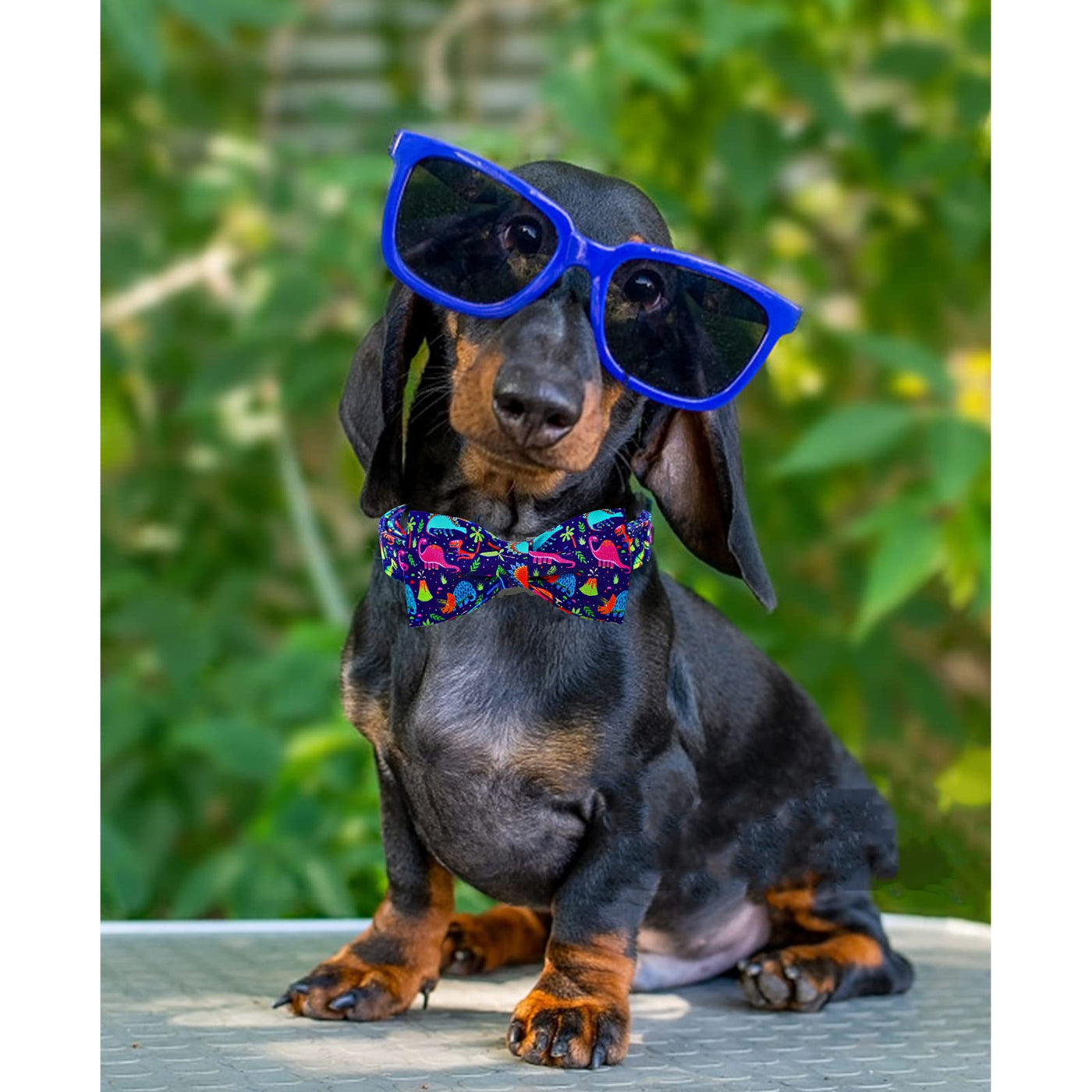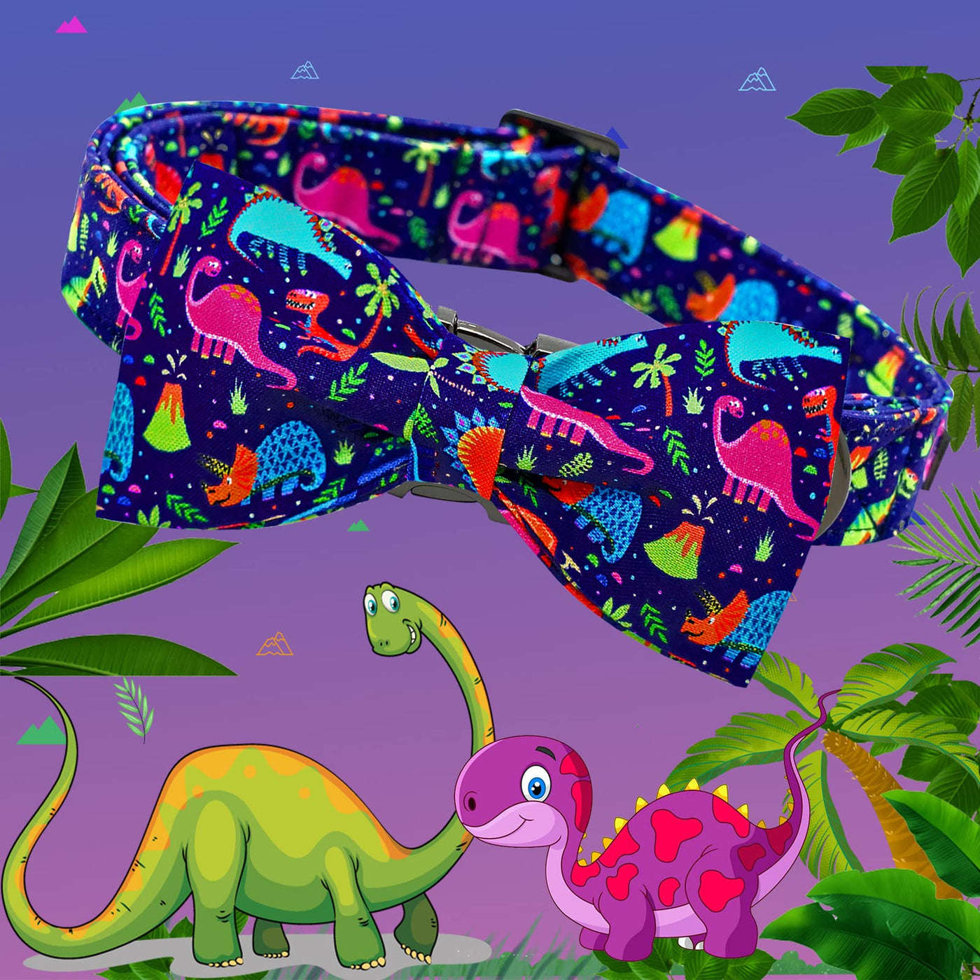 Lionheart glory Dog Collar, Blue Dog Bow Collar Boy Dog Collars with Bow Adjustable Dinosaur Bowtie Collar for Large Dogs Pet Gi