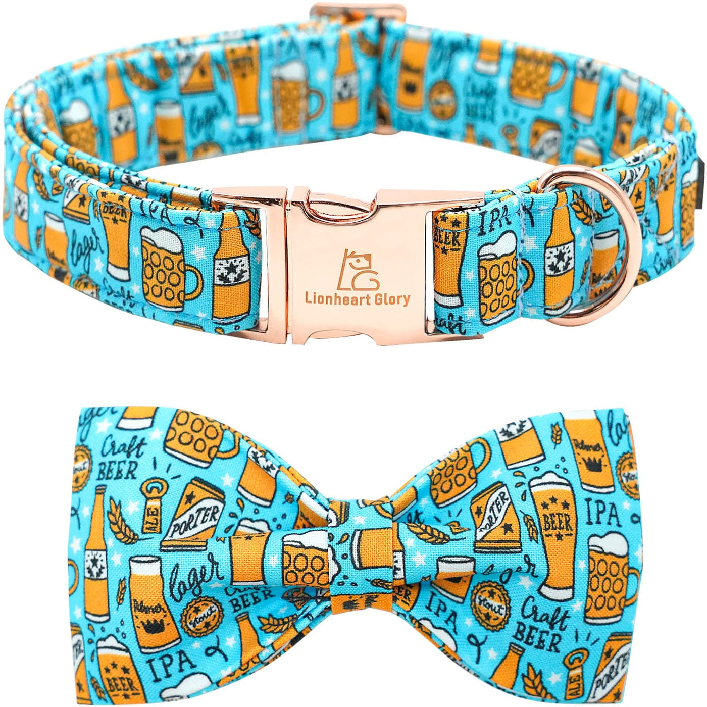 Lionheart glory Dog Collar Bow Collar Blue Dog Collar with Bow Party Collar Dog Boy or Girl Soft Durable Adjustable Dog Collars