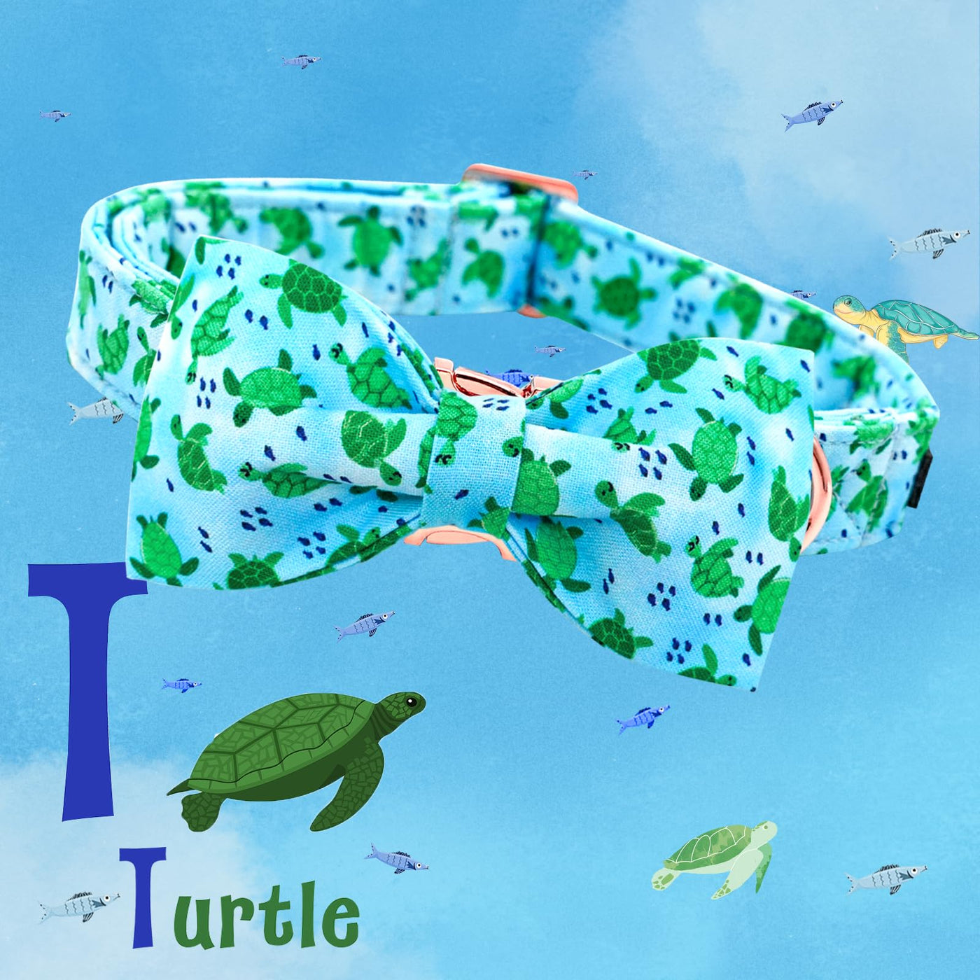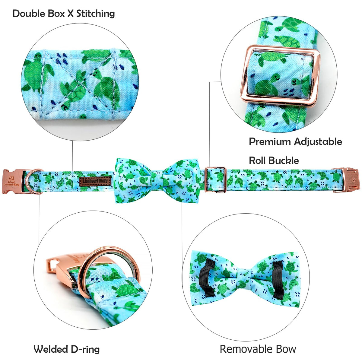 Lionheart glory Dog Collar Bow Collar Blue Dog Collar with Bow Summer Collar Dog Boy or Girl Soft Durable Adjustable Dog Collars