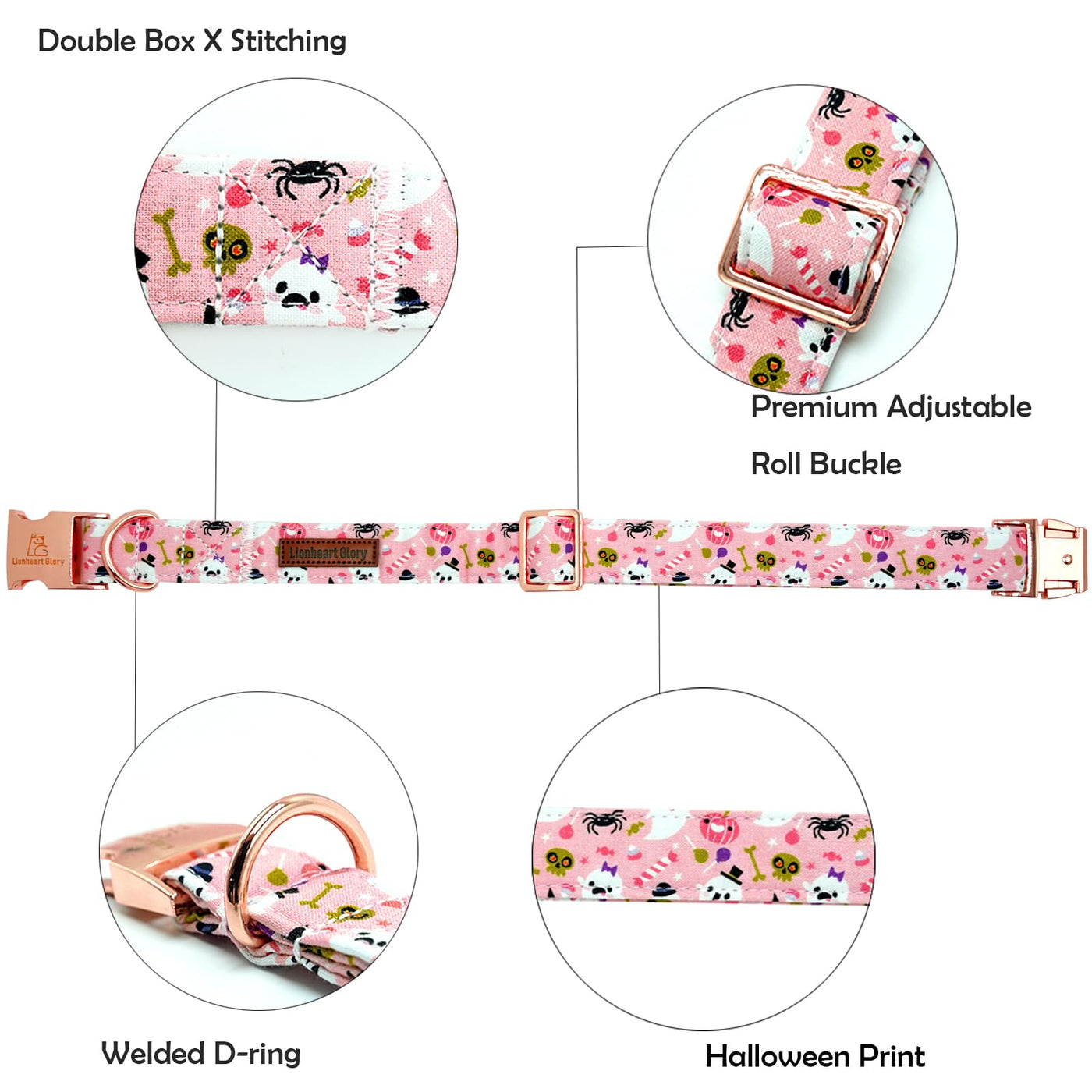 Lionheart Glory Dog Collar Fall Halloween Pumpkin Collars Dog Heavy Comfortable Adjustable Pink Dog Collar For Large Collar Dogs