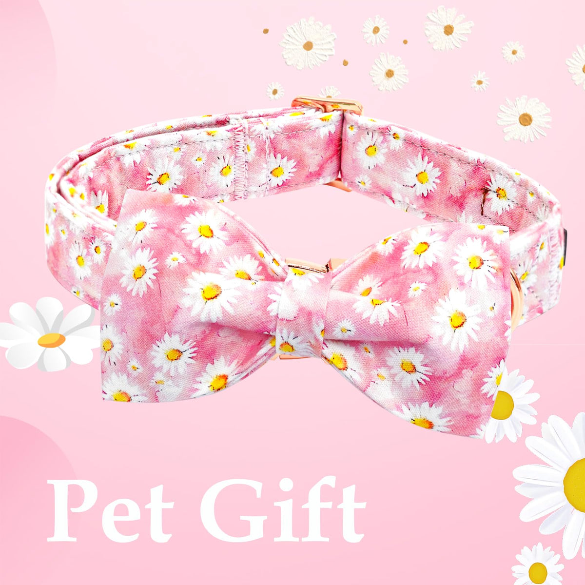 Lionheart Glory Dog Collar, Pink Floral Pattern Dog Bow Collar Girl Dog Collars With Bows Adjustable Durable Collar For Medium D
