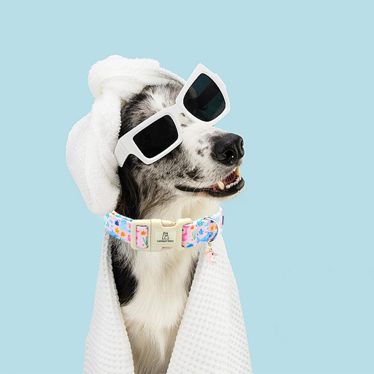 Lionheart Glory Dog Collar Sea Animals Print Pink Dog Collars Male Or Female Spring Summer Cute Collar Pet Gift Durable Adjustab