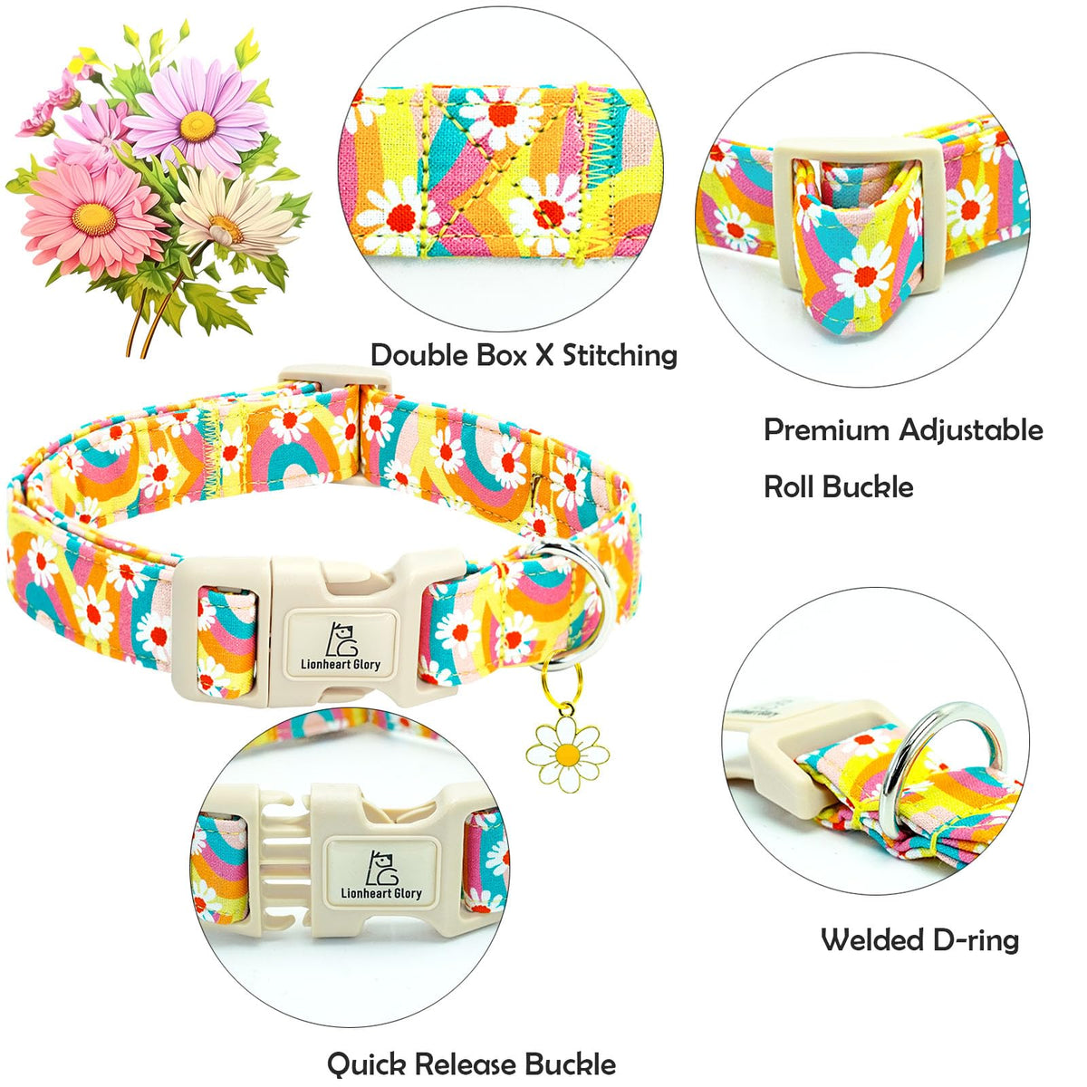 Lionheart Glory Dog Collar-Sunflower Pattern Dog Collar Cute Colorful Dog Collars Heavy Duty Adjustable Collars For Small Dogs P