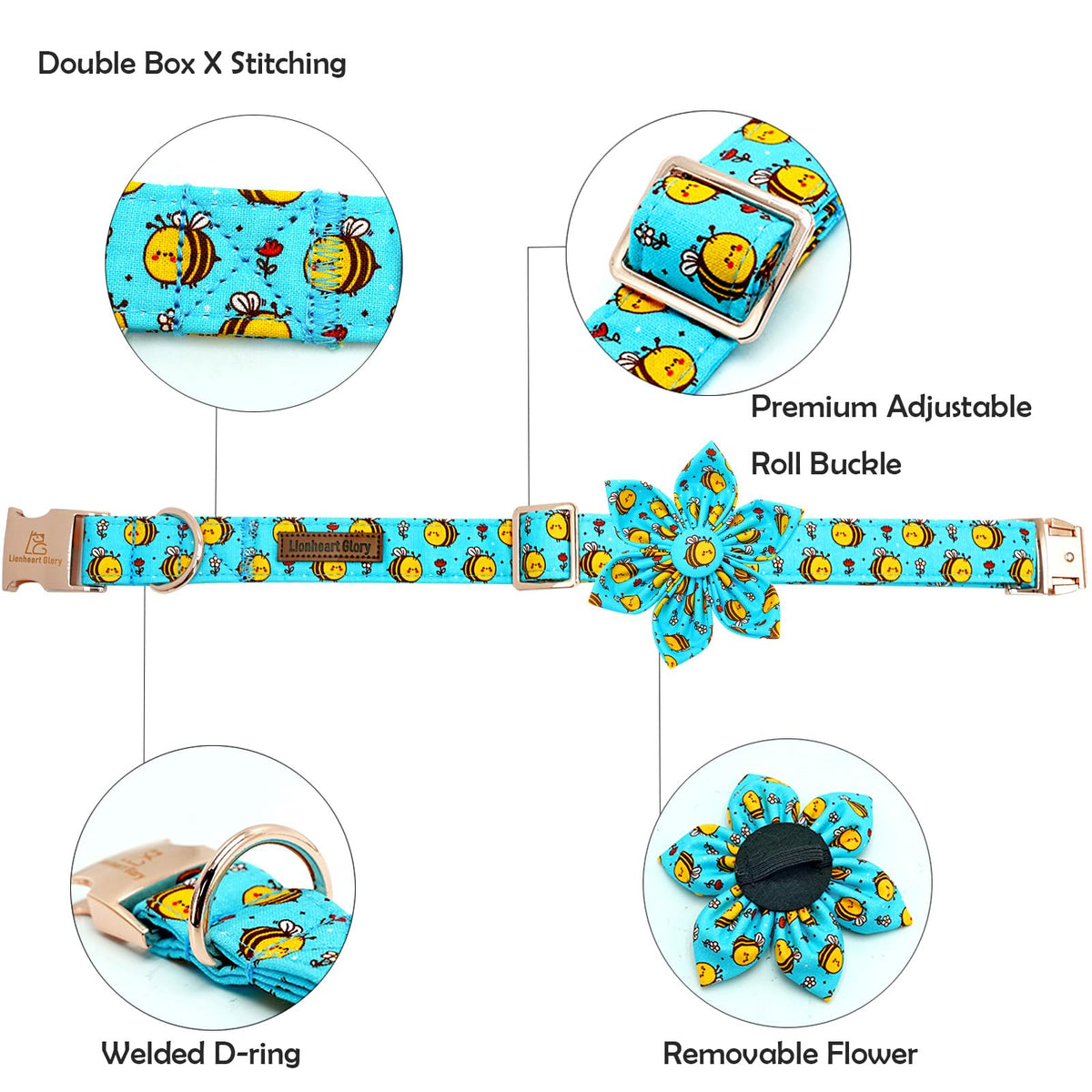 Lionheart Glory Dog Collar With Flower Dog Collar For Medium Dogs, Bees Print Dog Flower Collars Spring Blue Cute Collars Pet Co