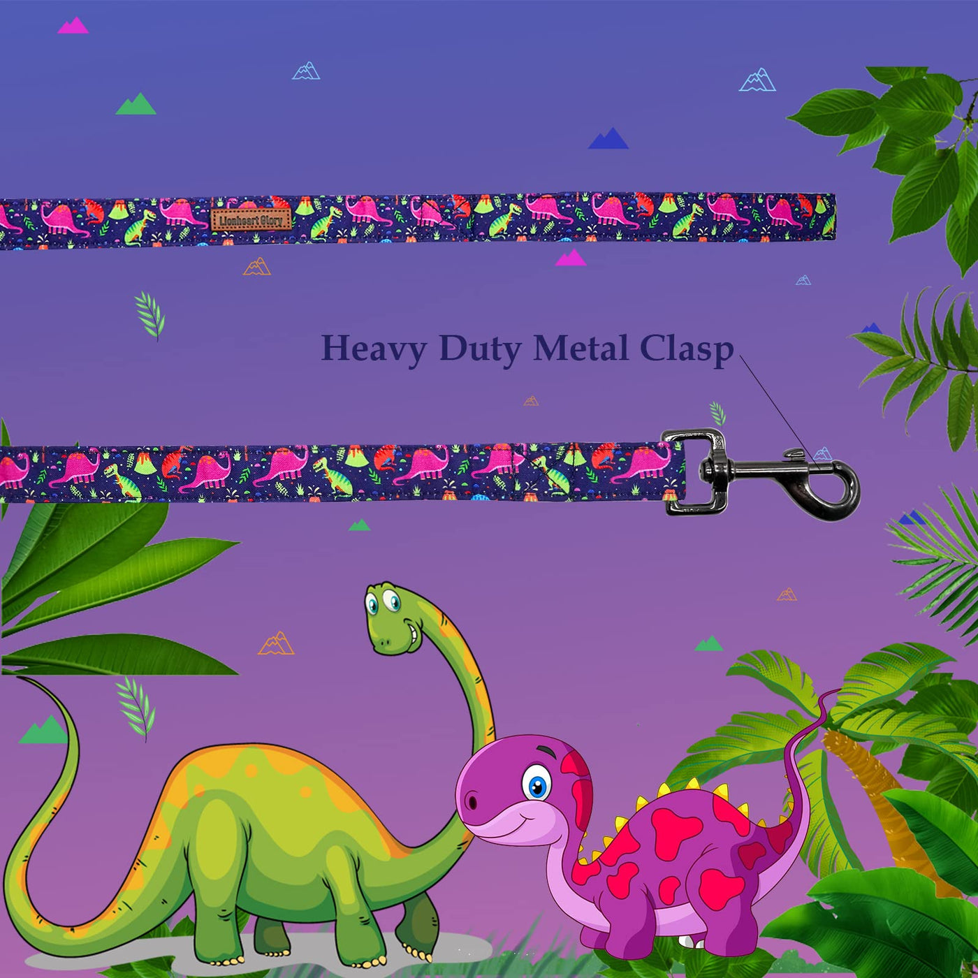 Lionheart Glory Dog Leash Blue Dinosaurs For Small Medium And Large Dogs Durable