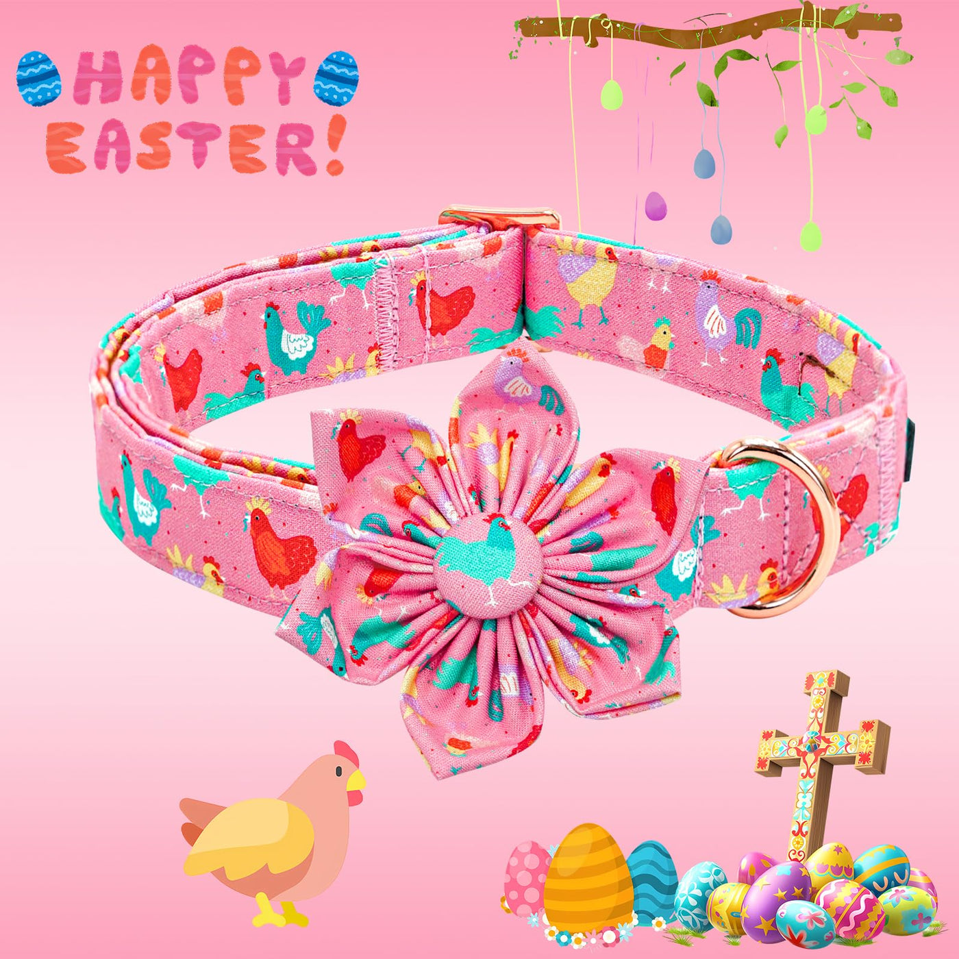 Lionheart Glory Easter Day Dog Collar With Flower Dog Collar For Large Dogs, Easter Chickens Colorful Dog Flower Collars Spring