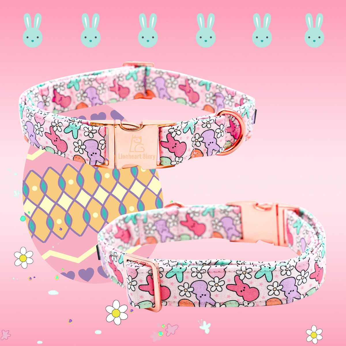 Lionheart Glory Easter Dog Collar Colorful Collar For X-Small Dog Collars Rabbits Print Dog Collars Spring Female Or Male Pet Gi