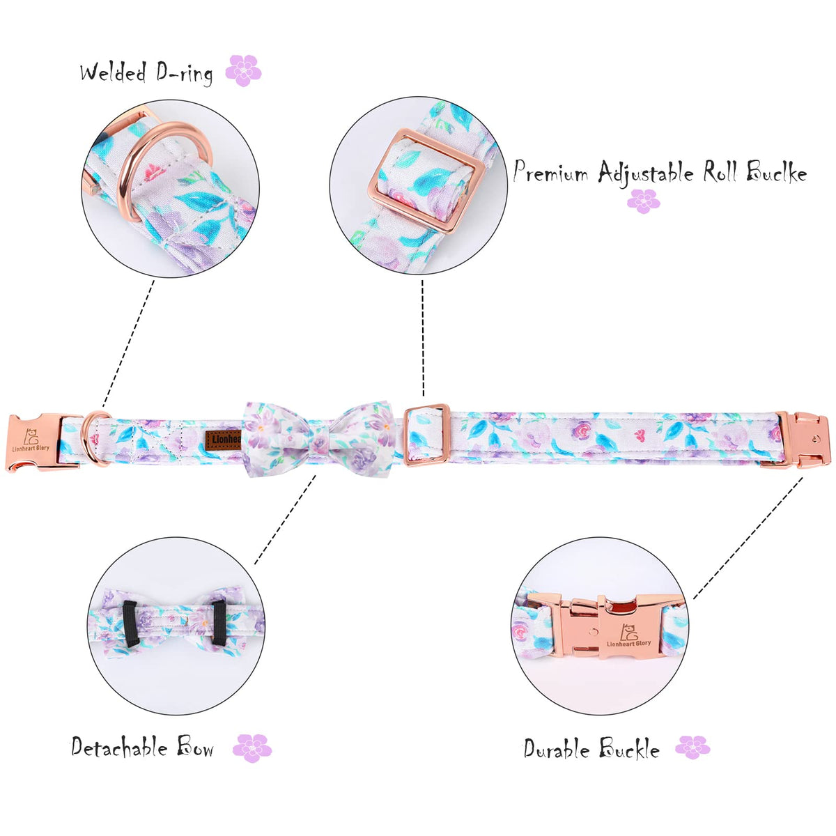 Lionheart Glory Purple Dog Collar, Adjustable Dog Collar With Bowtie, Pet Gift Collar For Dog Soft Bowtie Dog Collars For Small