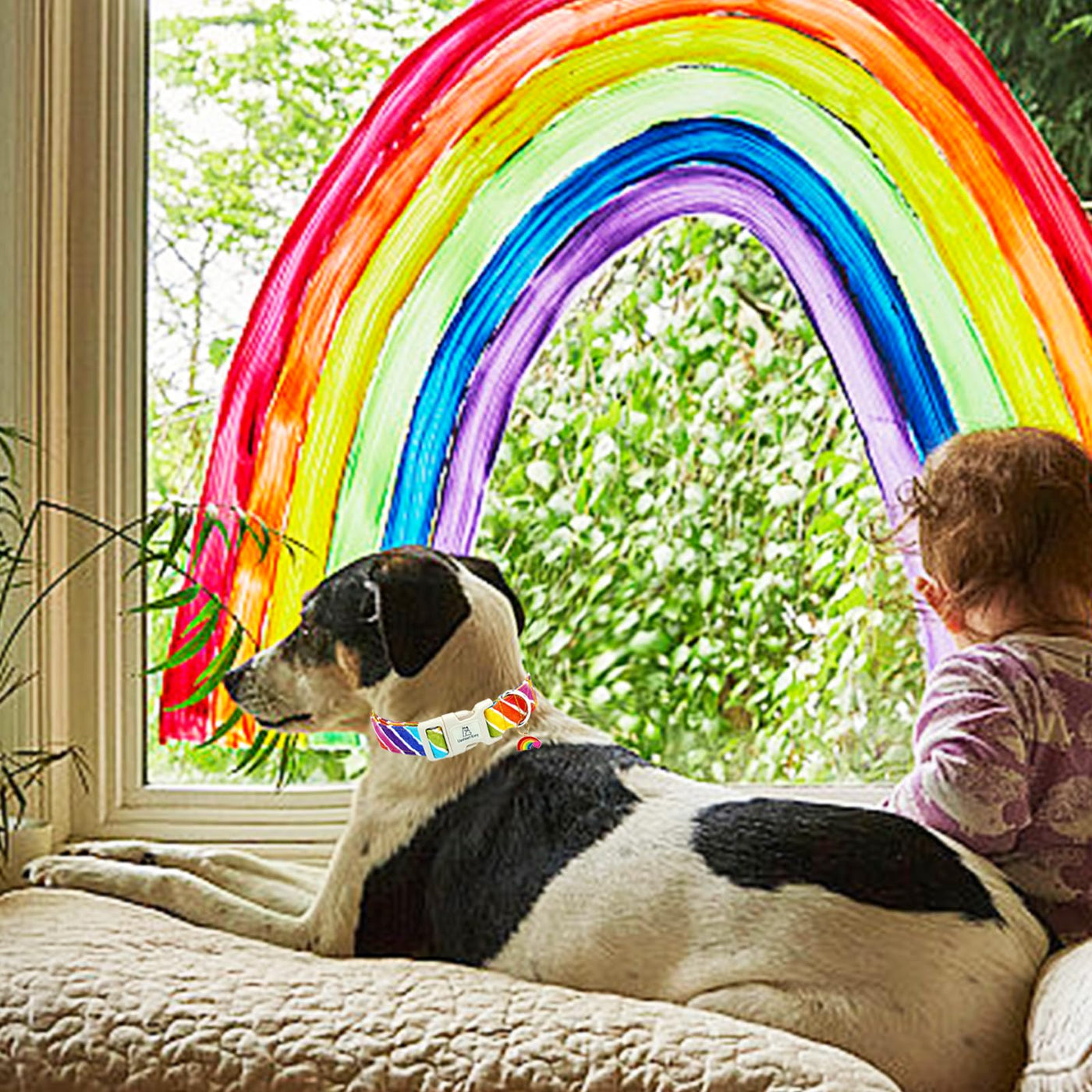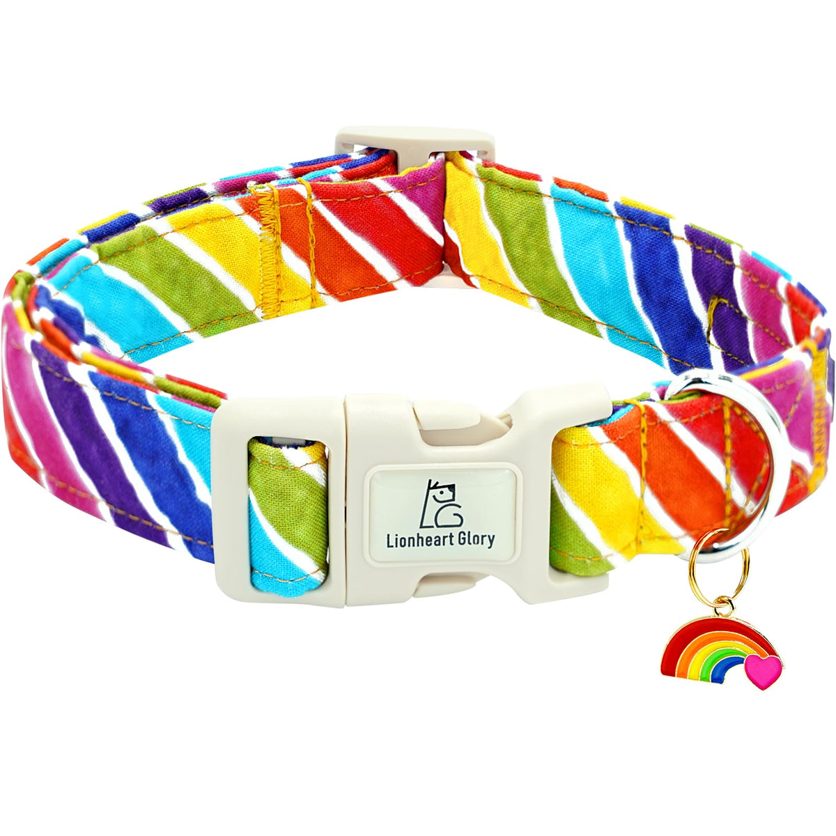 Lionheart Glory Rainbow Pattern Dog Collar-Colorful Dog Collars Heavy Duty Adjustable Pride Collars For Medium Dogs Pet Gift Sum