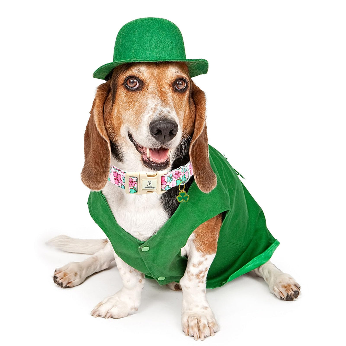 Lionheart Glory St. Patrick Dog Collar, Clover Pink Collar For Large Dogs Spring Female Dog Collars Adjustable Heavy-Duty Dogs C