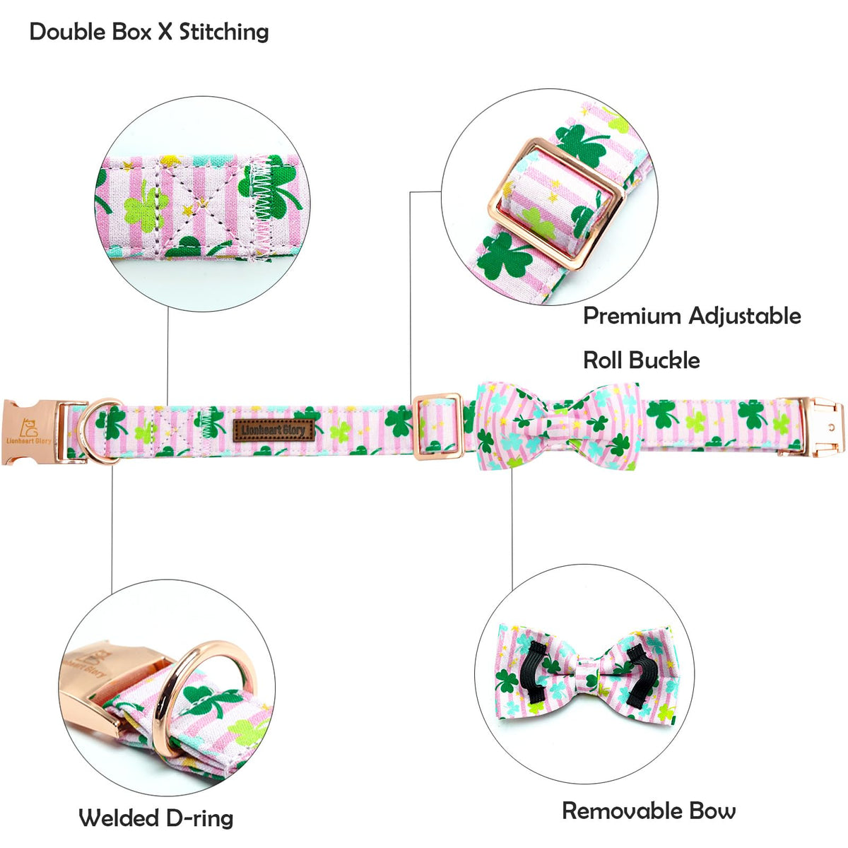 Lionheart Glory St.Patrick'S Day Dog Collar-Lucky Clover Shamrock Dog Bow Collar For Medium Dogs Pink Spring Female Trefoil Dog