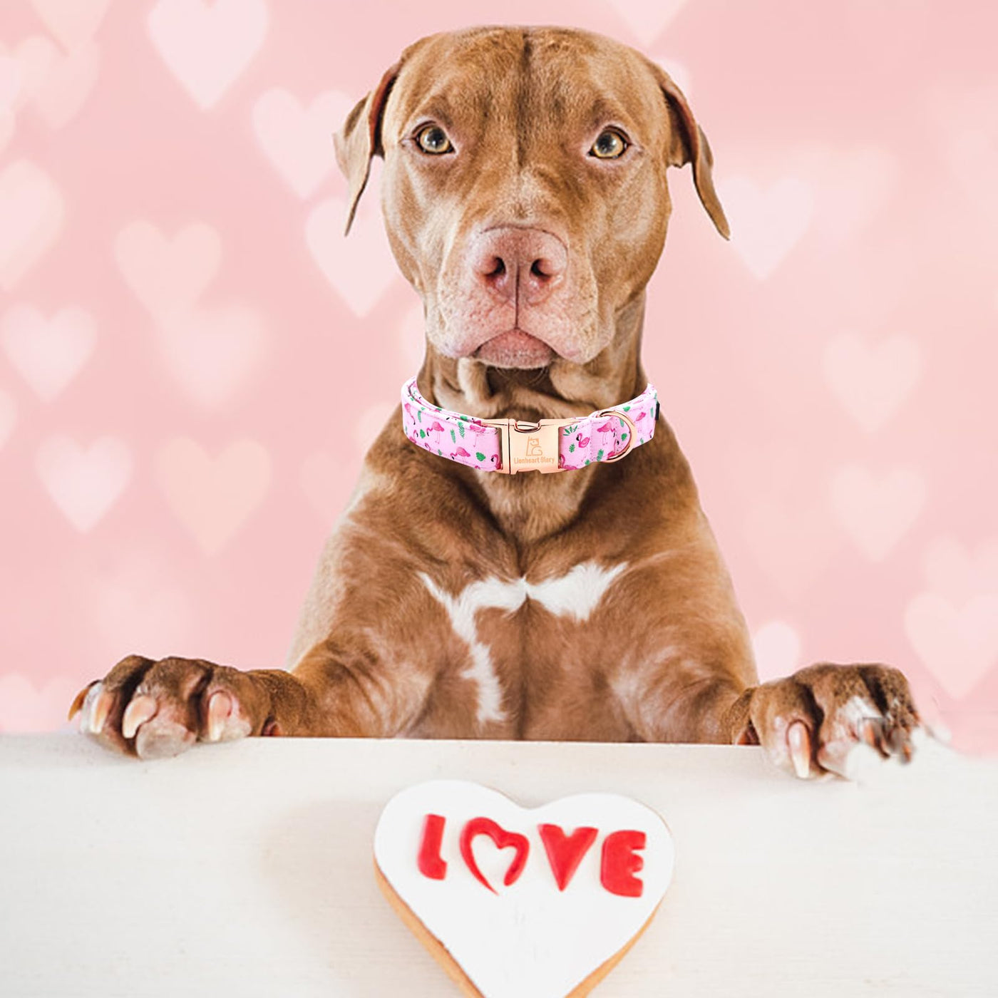 Lionheart Glory Valentine'S Day Collar, Flamingos Print Dog Collar For Medium Pink Dog Collars Spring Female Pet Gift Adjustable