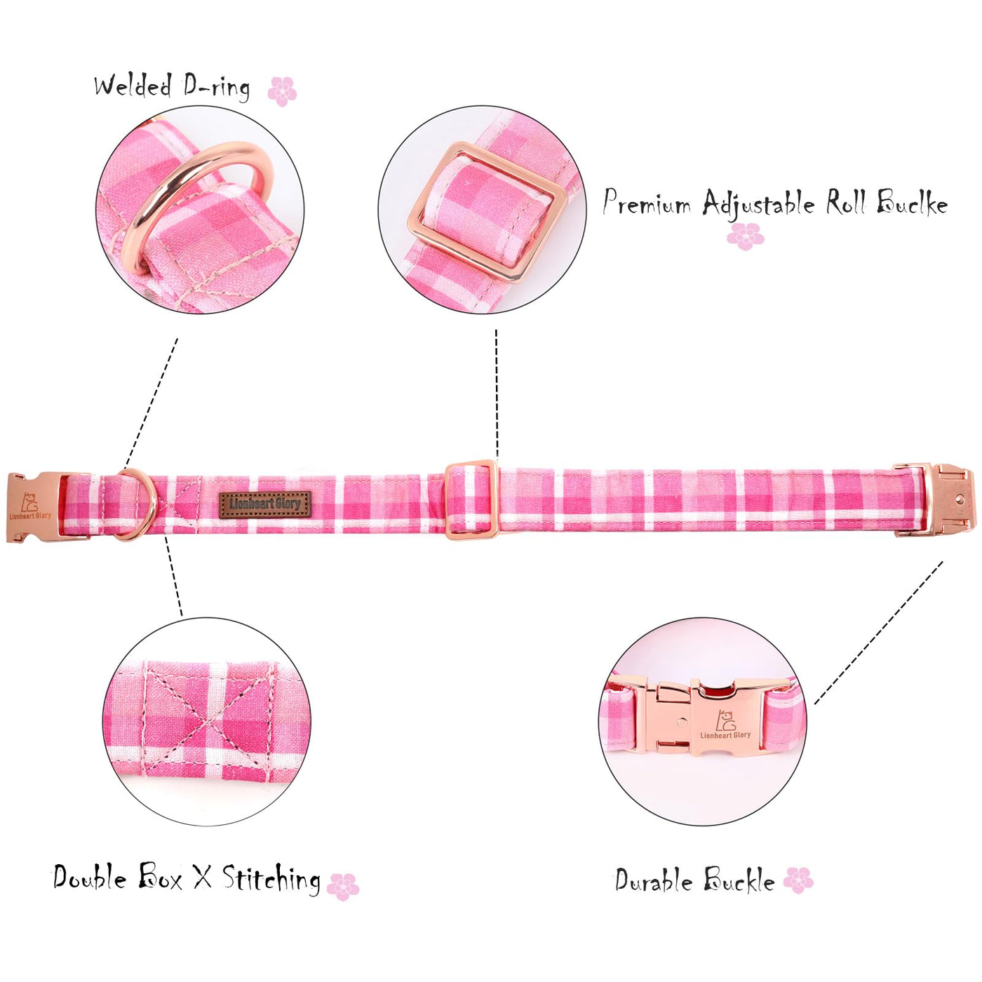 Lionheart Glory Valentine'S Day Collar, Pink Plaid Dog Collar For Large Cute Dog Collars Spring Female Pet Gift Adjustable Heavy