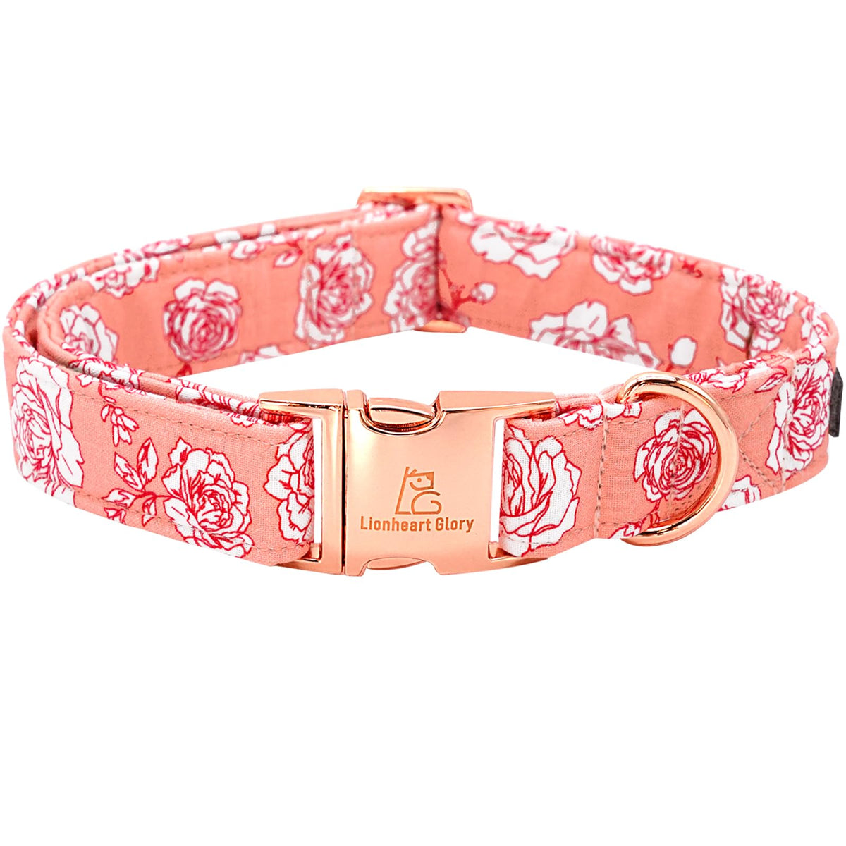 Lionheart Glory Valentine'S Day Collar, Pink Roses Print Dog Collar For Small Cute Dog Collars Spring Female Pet Gift Adjustable