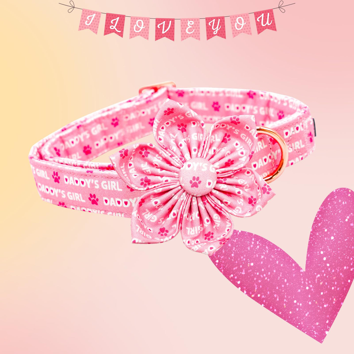 Lionheart Glory Valentine'S Day Dog Collar With Flower Pattern For X-Small Dogs, Pink