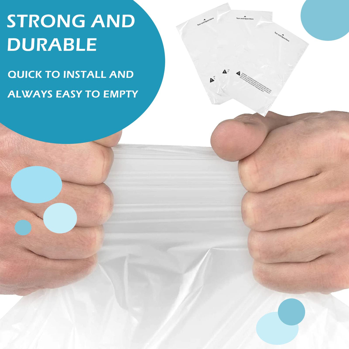 Q: What materials are these liners made of?A: These liners are made of ultra-thick, high-quality plastic that is tear-resistant, scratch-resistant, and waterproof, ensuring durability and effective odor control.