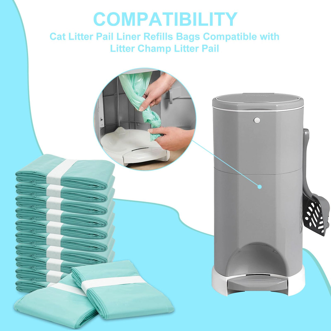 Perfectly Compatibleour Cat Litter Pail Liner Refills Bags Are Compatible With Litter Champ Litter Pail.Bad Odor Preventionliners Are Made Out Of 22% Thicker High-Quality Plastic Using Odor-Seal Technology To Lock Away Nappy Odors. No More Lingering Smells Of Cat Poop In The House Anymore.Save Money - It'S A Continuous Roll, Cut And Tied Off To Whatever Size You Want.Strong, Stretch, Tear-Resistance Plastic That Won'T Rip.These Diaper Pail Refills Are Lightly Scented To Achieve Maximum Odor Control.Fewer Trips To The Outside Bin.One Pack Of Refills Can Last Up To 4 Weeks For A Cat.Better Value6 Packs Of Refills Can Last Up To 32 Weeks For A Cat. Each Liner Pack Refill Is Over 32 Feet Long And 18 Microns Thick.