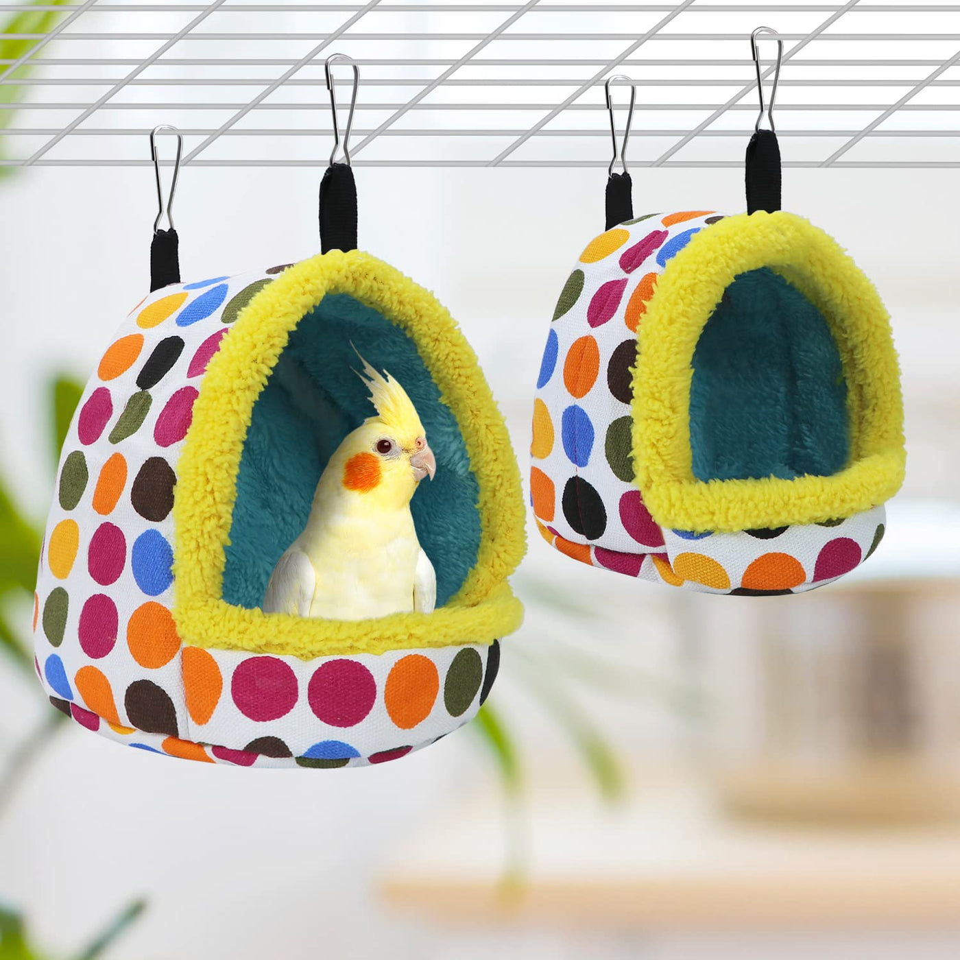 Q: How do I install the bird hammock in my pet's cage?A: The hammock comes with two clips that make it easy to hang securely inside your pet's cage. Alternatively, you can place it directly on the bottom of the cage for your pet to enjoy.