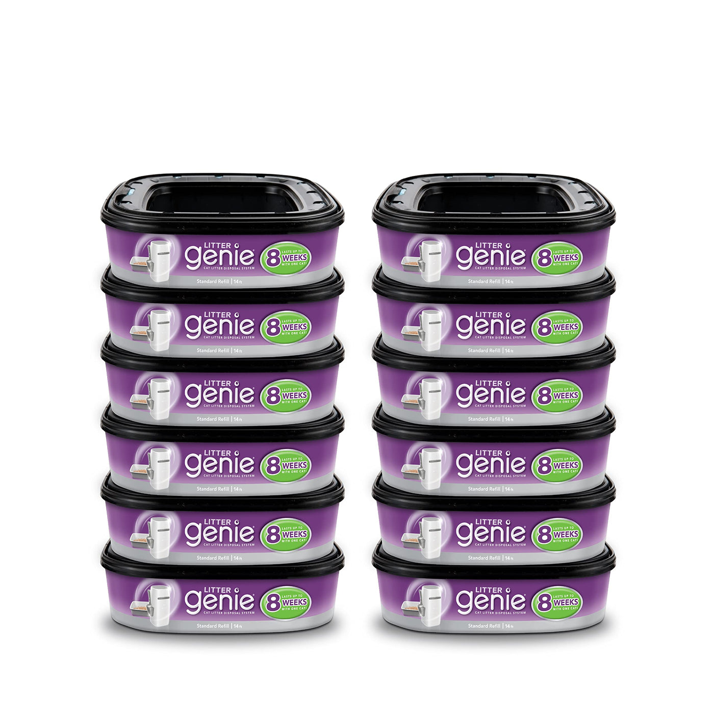 Litter Genie Refill Bags (12-Pack) | Multi-Layers Of Odor-Barrier Technology | 1 Square Refill Cartridge Lasts Up To 2 Months Per Cat