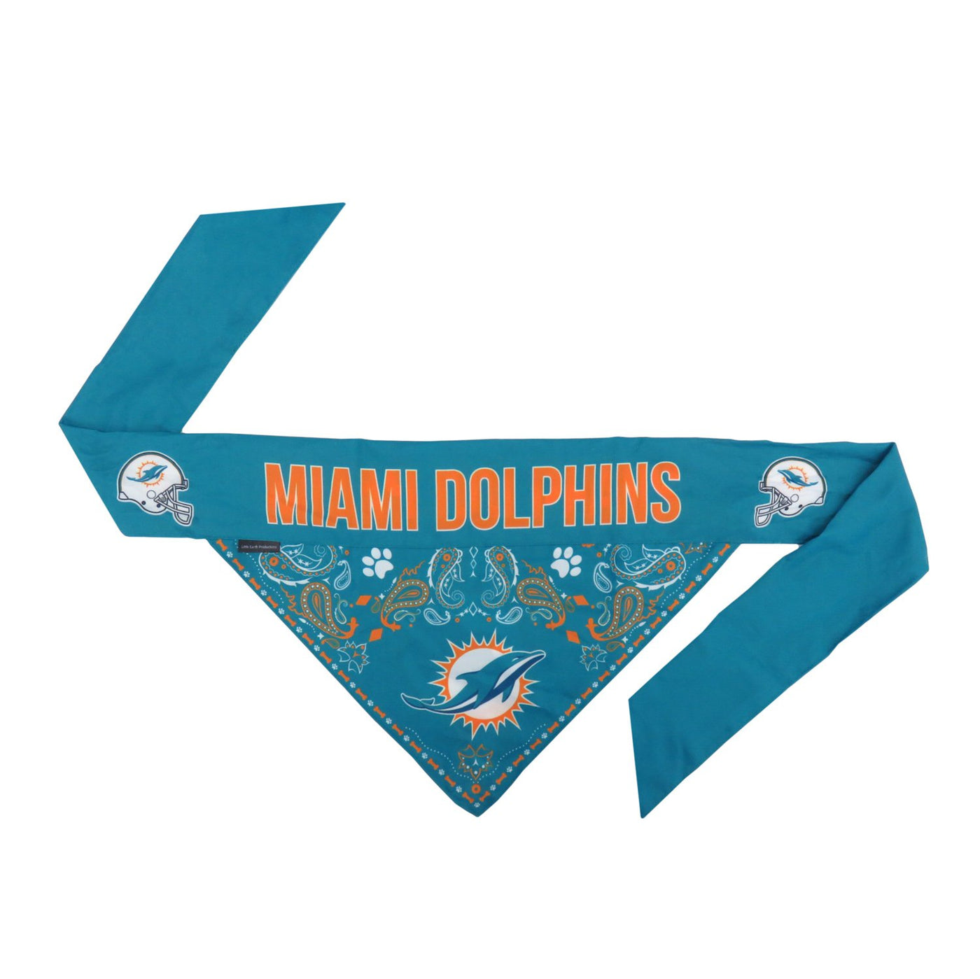 DescriptionThis 2 for 1 pet Bandana makes your dog or cat a stylish furry fan. Made of a soft cotton/poly blend, each bandana features 2 unique designs, a primary team logo design and a paisley design. Both designs feature a colorful team logo graphic that looks fabulous on walks, playing in the yard, or while napping on a lazy afternoon. Comes in 5 comfortable sizes and is machine washable for easy cleanups! Find your pet's size by using the sizing chart - measure your pet's neck size for the perfect fit.