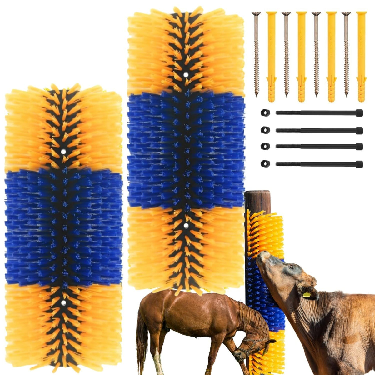 Livestock Scratch Brush, 2Pcs Goat Brush Post For Scratching Itch,Durable Cow Scatcher Can Be Easily Mounted,Best Horse Brush Fo