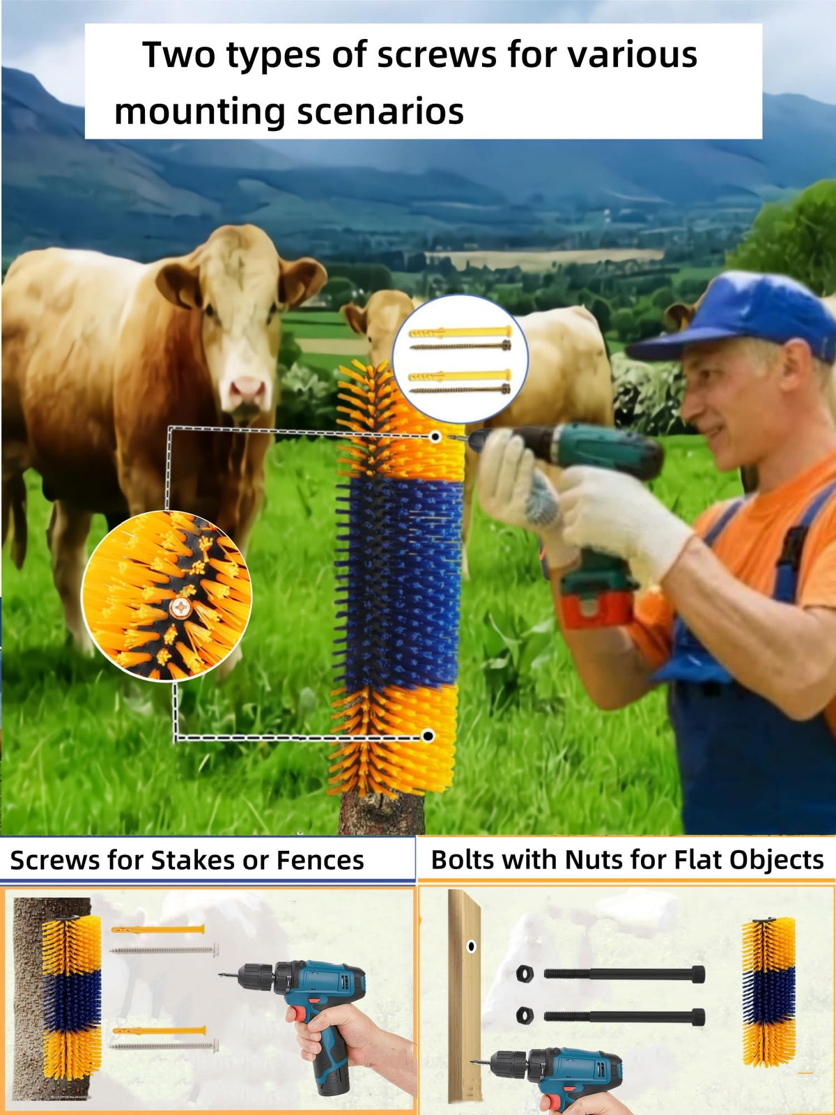 Why You Need The Goat Brush ? Our Livestock Back Scratcher Brush Is Not Only Effectively Removes Dirt, Dead Skin To Keep Your Animals Clean And Healthy, But Also Provides A Comfortable Scratching Experience. How To Install The Horse Brushes For Grooming You Can Attach Cattle Goat Supplies Brush Firmly Onto A Strong Piece Of Wood, Part Of A Sturdy Fence Or Building Or Even A Tree Branch. - With The Provided 2 Kinds Different Screws , Or You Can Use Zip Ties To Attach It To Metal Fencing. Cow Brush Scratcher Post/Horse, Goat, Cow, Pig Massage Brush Features: Promotes Healthy Skin And Coat The Livestock Scratching Brush Can Reduce Stress And Anxiety Revaxup Goat Brushes For Grooming Relieves Itching And Discomfort The Pig Brushes For Grooming Improves Circulation And Overall Health Revaxup Livestock Brush Promotes Relaxation And Bonding