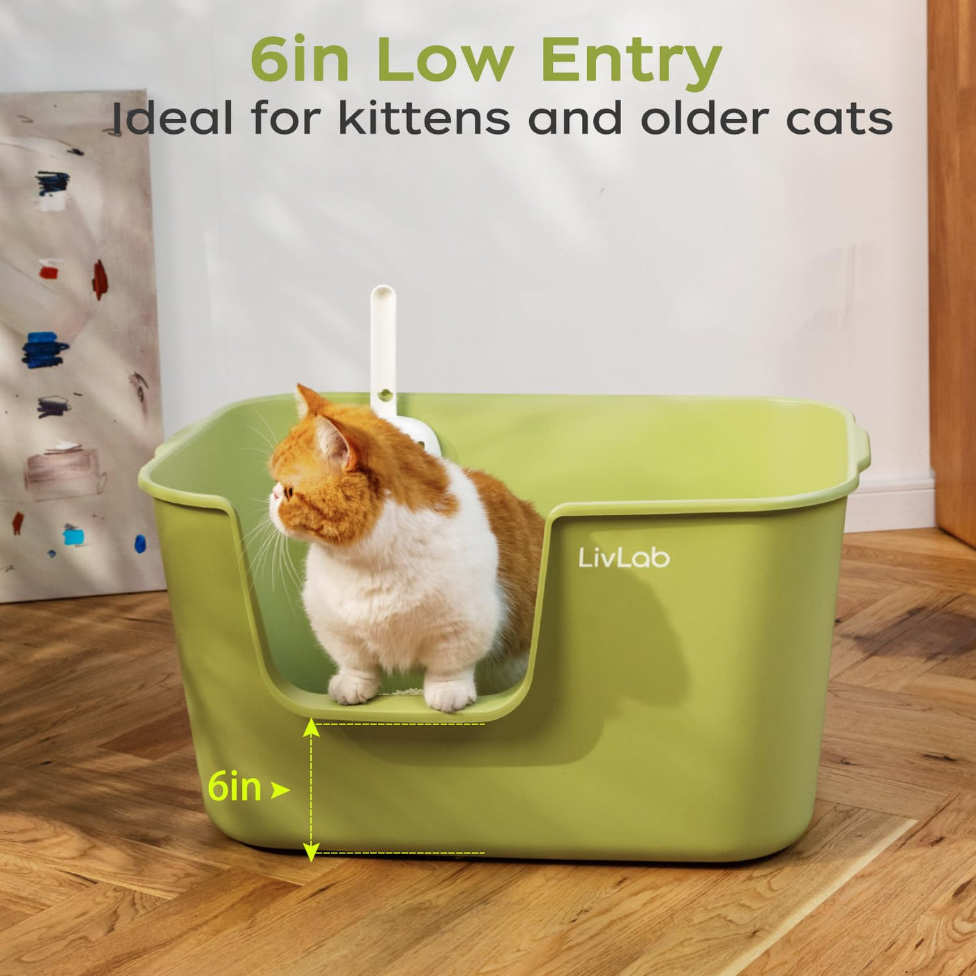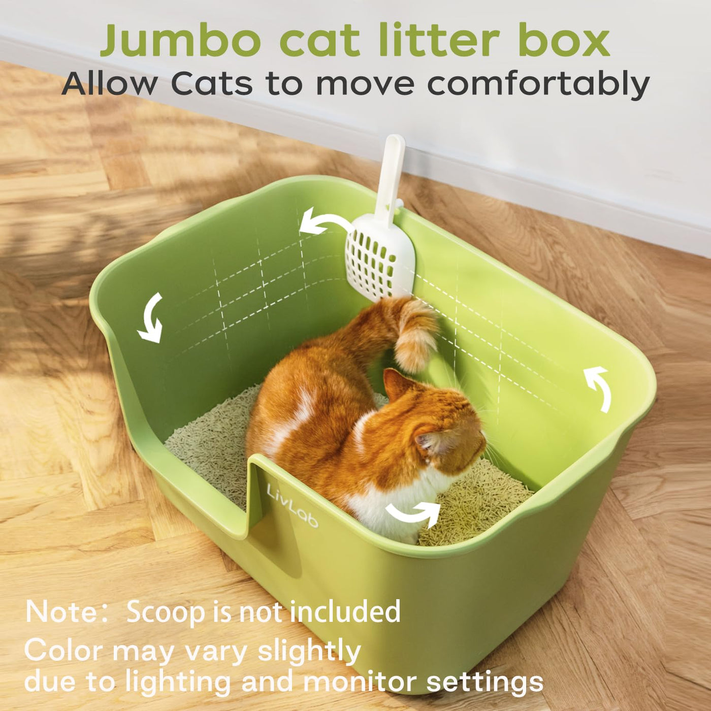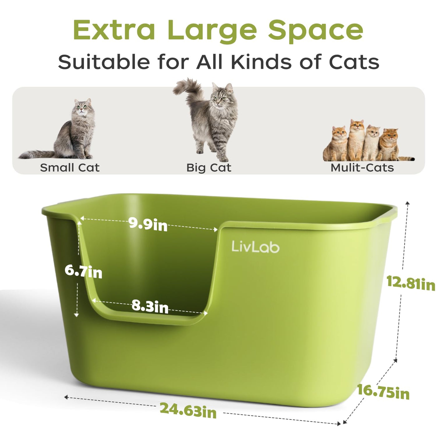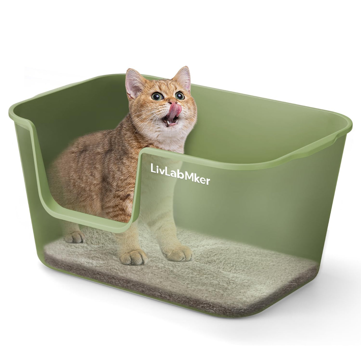 Livlab Mker Extra Large Cat Litter Box - 25' Lx16 Wx13 H Open Top High Sided Pan, Xl For Big Cats, High Wall Jumbo Litter Box,