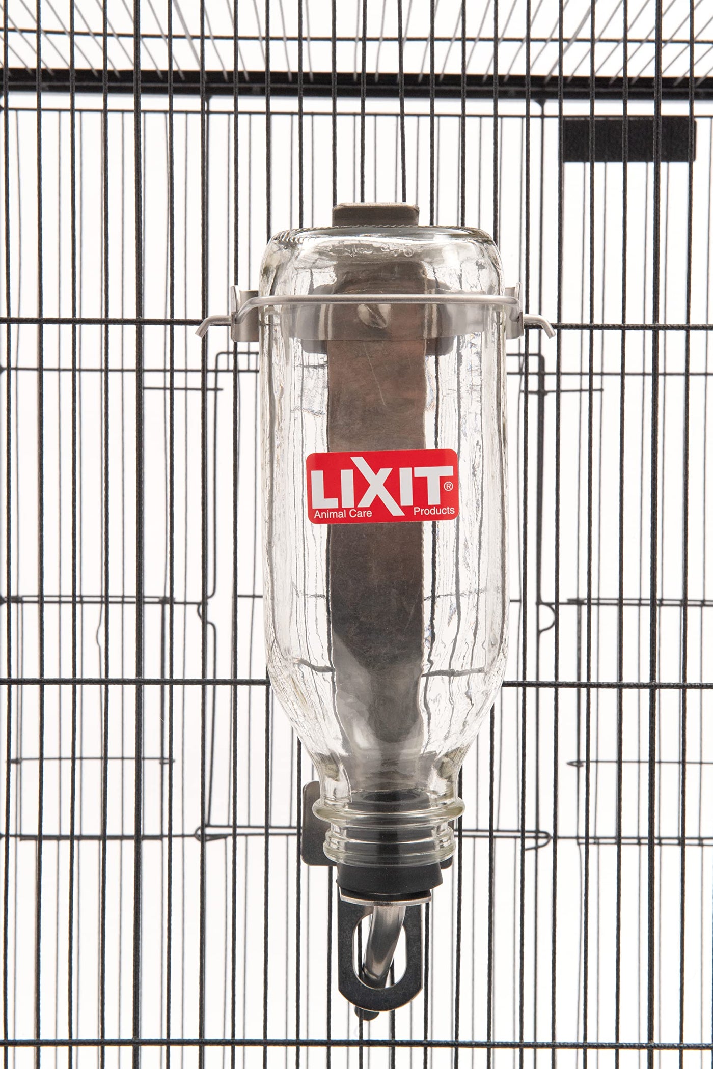 Medium nozzle size: the medium Tube measuring 7/16' Is designed for hook bill birds such as Conjures, African greys, Quakers, Senegal's, and s | Great for many animals: This bottle isn't just for feathery friends. It is also great for other animals such as rabbits, ferrets, guinea pigs, chinchillas, and small dogs | Easy install: This bottle easily attaches to wire cages with mounting hardware, and it's quick to remove for refilling and cleaning | Mess-proof: Lixit glass tube Water bottle keeps water fresh and clean from debris and won't be knocked over like other water dishes | The safe choice: Lixit glass water bottle is made with a stainless steel drinking tube and a non-toxic, USDA Approved rubber stopper