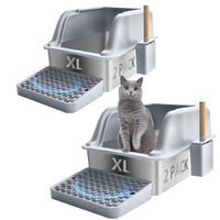 Lmebe 2 Pack Xl Large Enclosed Jumbo Stainless Steel Cat Litter Box,Kitty Metal Litter Box With Lid Footboard Litter Scoop Non-S