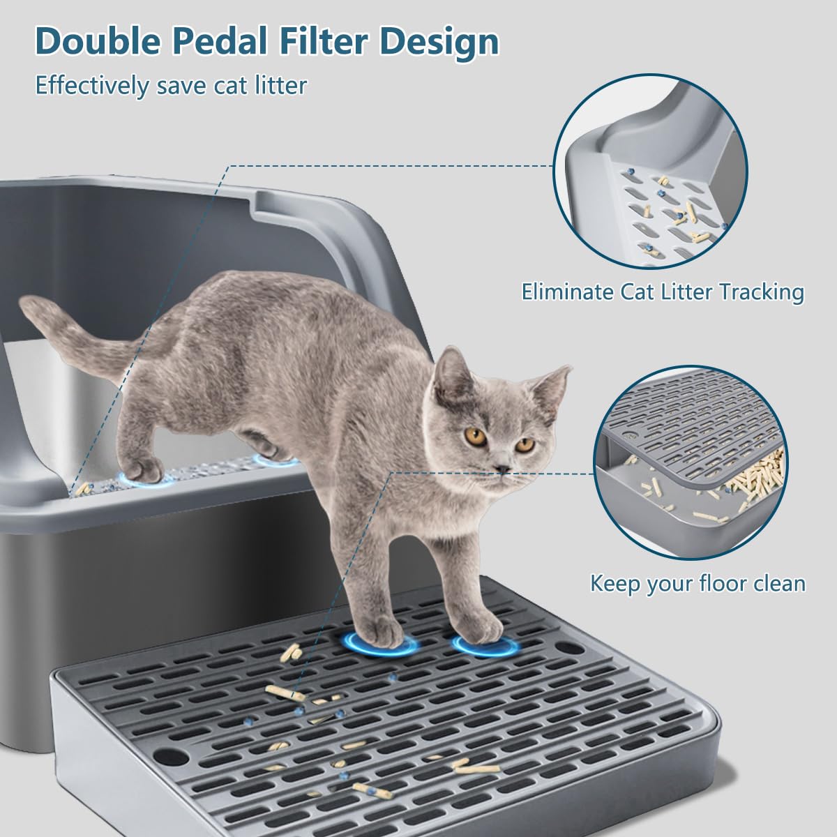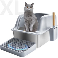 Lmebe Large Stainless Steel Cat Litter Box,Kitty Litter Box With Lid,Xl Jumbo Enclosed High Sided Cat Litter Pan Boxes For Indoo