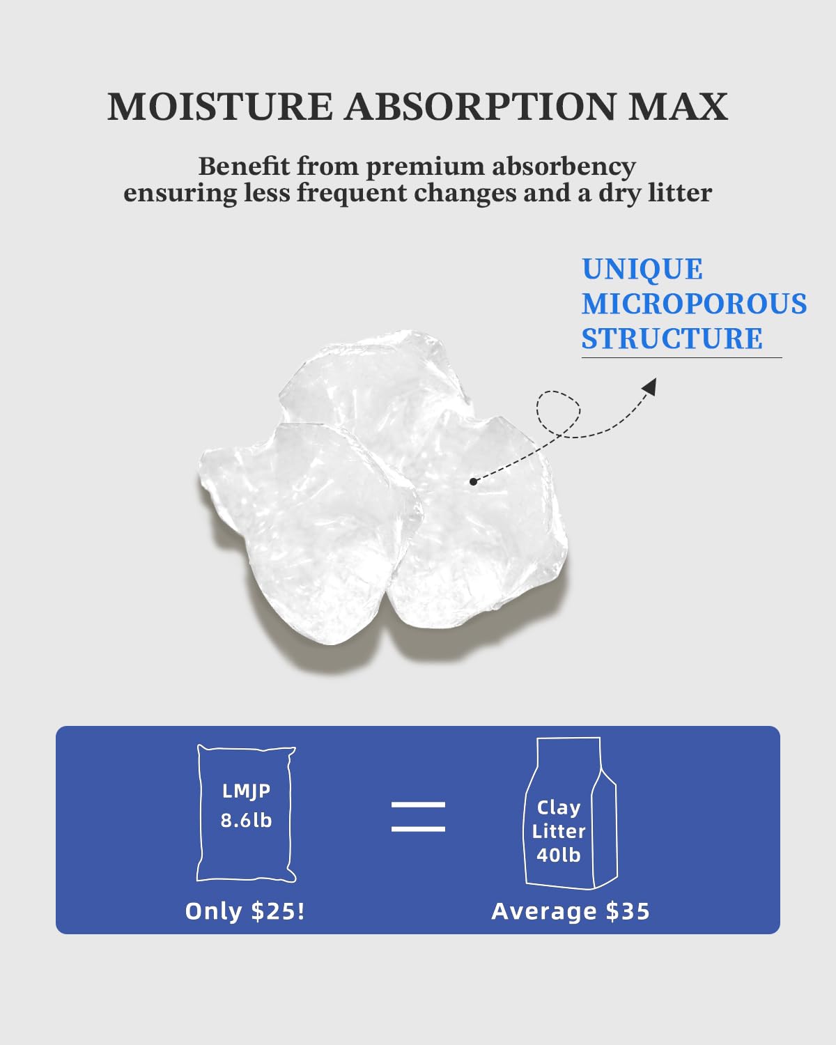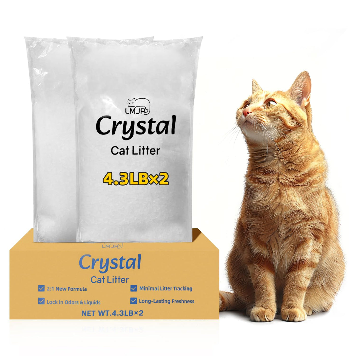 Lmjp Crystal Cat Litter, 8.6 Lb, Rapid Odor & Moisture Absorption Last Up To 2 Months, Low Tracking For Less Mess, Unscented Non