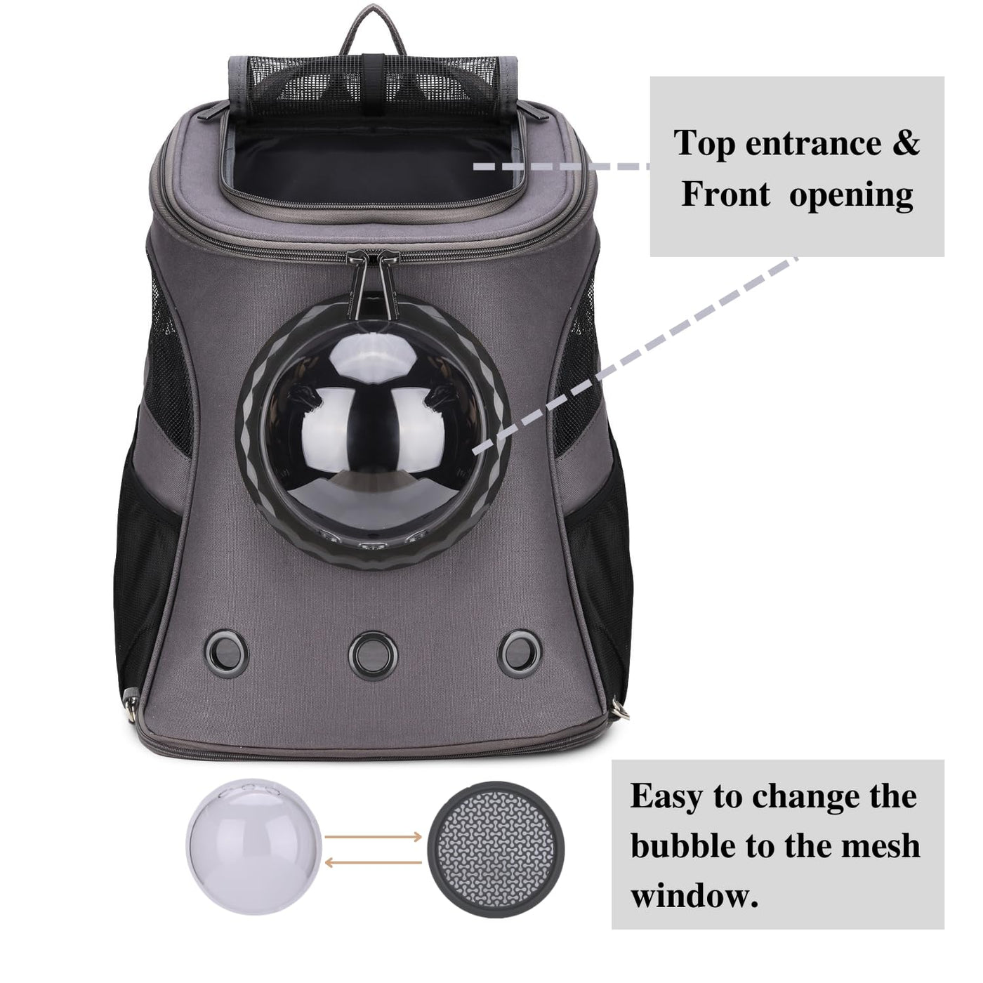 Lollimeow Large Pet Carrier Backpack, Bubble Backpack Carrier For Fat Cats And Puppies,Airline-Approved(Grey)