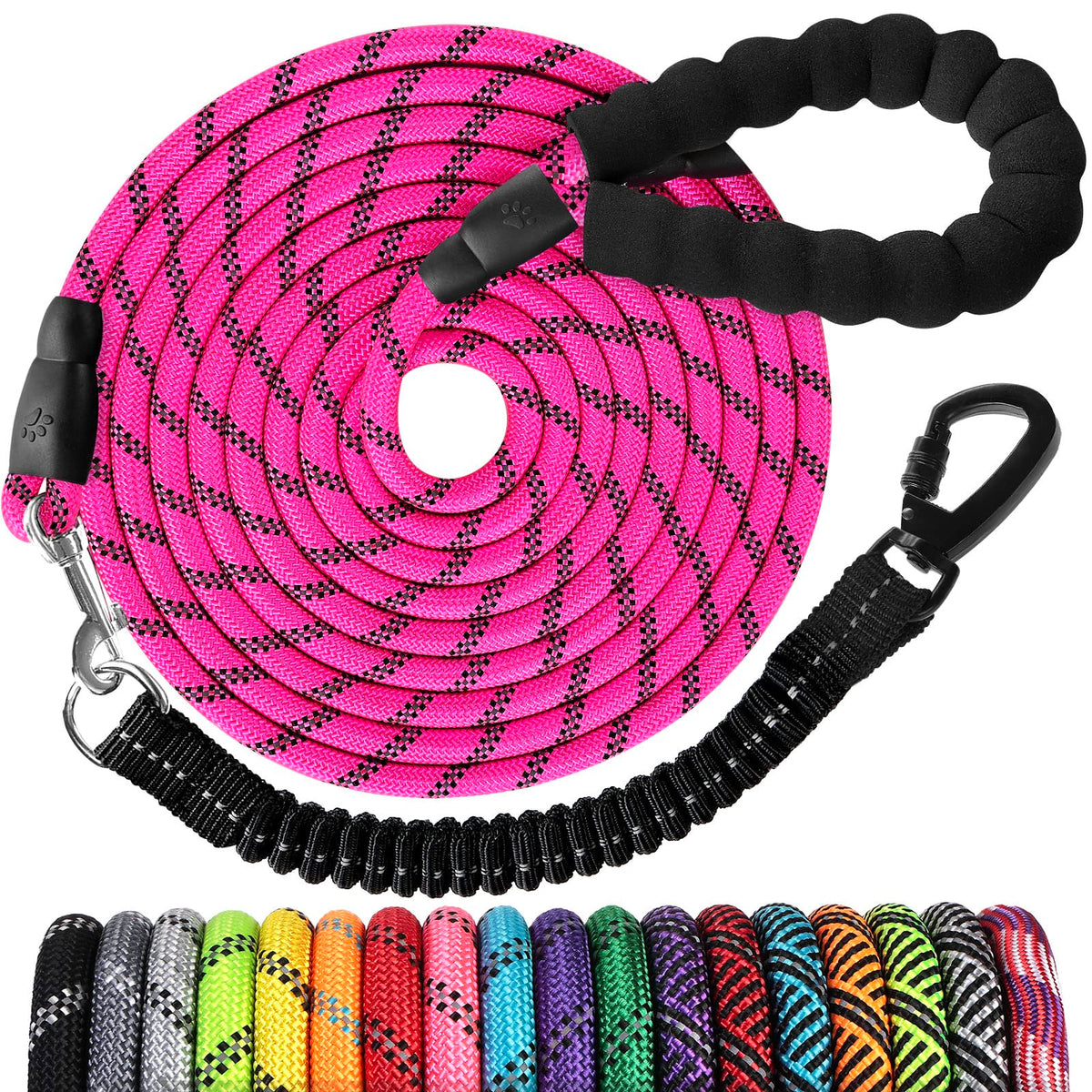 Long Dog Leash 15 Ft: Heavy Duty Rope Leashes For Dogs Training With Swivel Lockable Hook Reflective Threads Bungee And Padded Handle - Dog Lead For Large Small Medium Dogs Outside Walking Hiking Pink