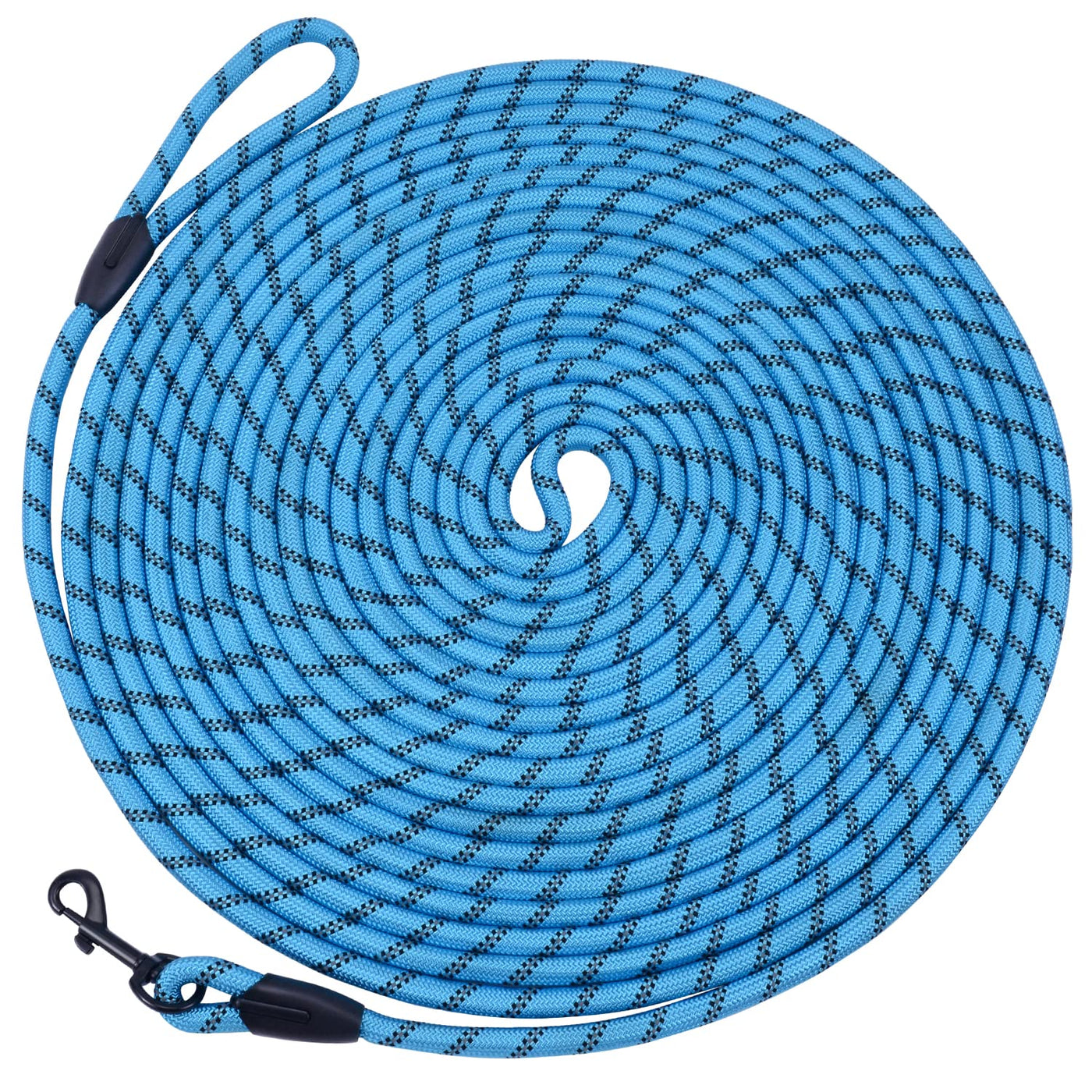 Hi Kiss Check Cord Large,Medium Small Dogs/Puppy Obedience Recall Training Agility Lead - 15Ft 20Ft 30Ft 50Ft Training Leash(Sky Blue 30Ft-Diam 1/2''-1 Hook)