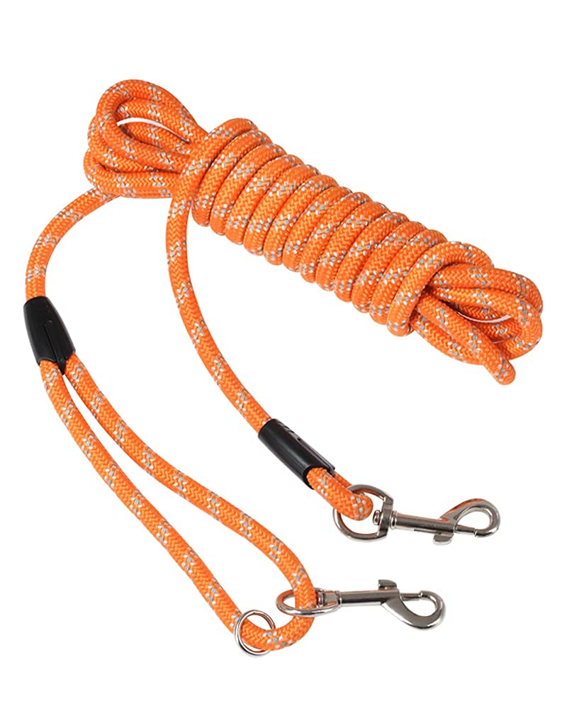 Q: What material is the leash made from, and how does it ensure durability?A: The leash is made from strong high-density nylon rope with a diameter of 3/8 inches and includes a durable metal clasp. This combination ensures that the leash is built to last, preventing wear and tear even with frequent use.